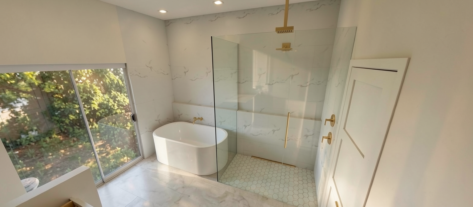 render a picturesque residential front entrance in a modern style the house features warm red brick walls contrasted with sleek dark brown wood paneling accentuate the black door and window frames for a contemporary touch set a serene atmosphere with soft natural sunlight casting gentle shadows enhance the vibrant greenery of the plants incorporating lush white and pale yellow flowers emphasize the light beige steps and stone borders creating a harmonious balance with the surrounding garden