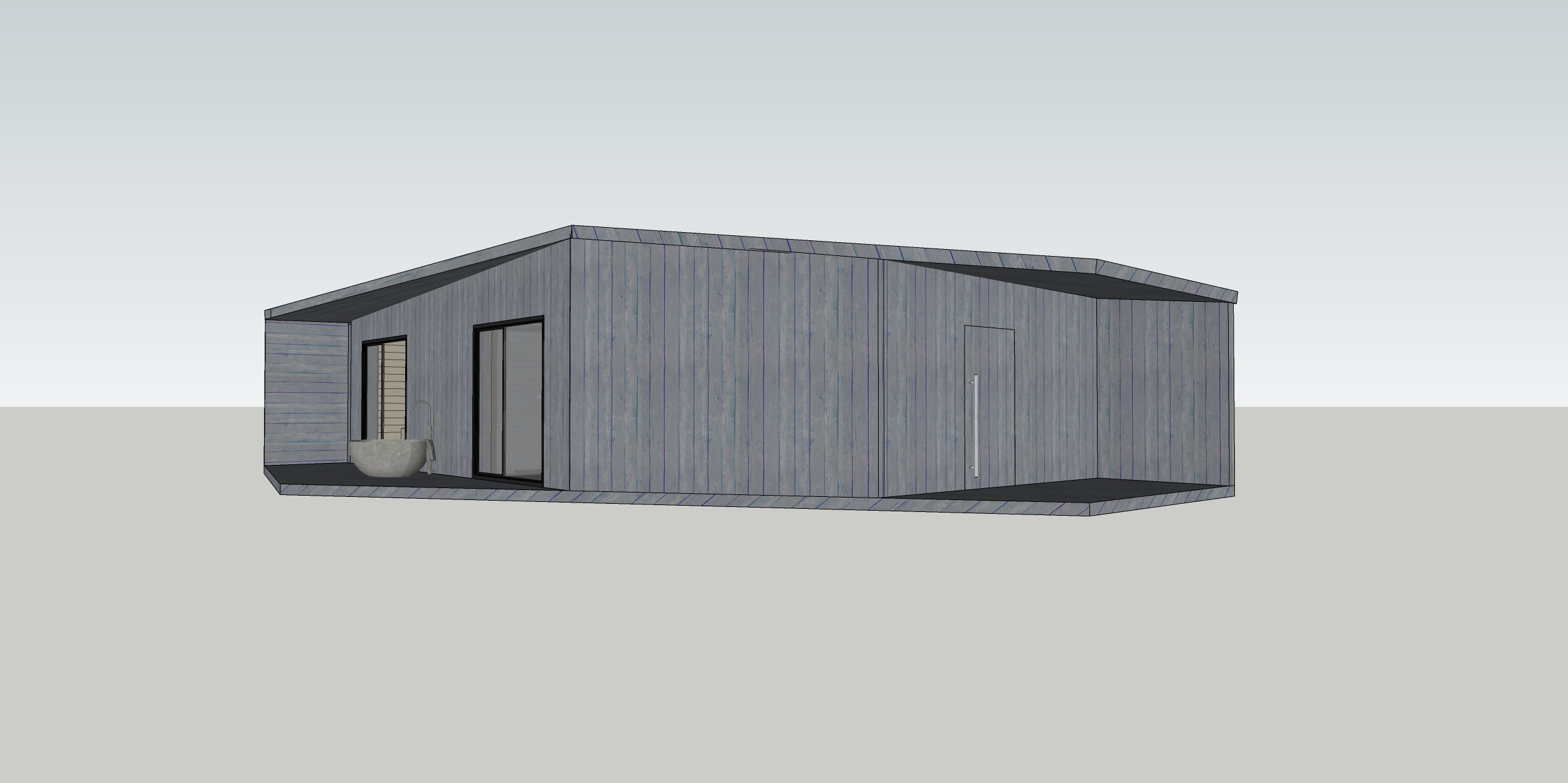 modernist exterior shot a beautifully rendered modern minimalist house set amidst a serene natural environment the house features wooden structures with a dark gray and black exterior large glass windows reflect the subtle hues of the surrounding landscape the wooden siding has warm earthy tones like soft browns and is combined with sleek contemporary black trimming the atmosphere is tranquil and the lighting is soft mimicking a gentle morning or late afternoon light the ground is adorned with patches of green moss and vivid yellow wildflowers adding a burst of color and life the surrounding trees are leafless drawn with delicate thin black lines indicating the late autumn season shadows of the trees create an intricate pattern on the house and the ground in varying shades of gray and brown the entire setting feels both modern and natural embracing simplicity and elegance architecture place these small cabins by a pond with the terrace directly connected to the water so it also serves as a wooden pier change the trees to have leaves it can be an autumn scene with warm colors the cabins should be made of dark charred wood natural peaceful atmosphere soft lighting reflections on the water cinematic composition