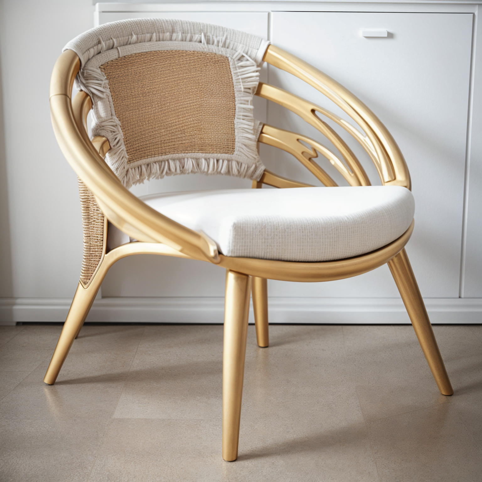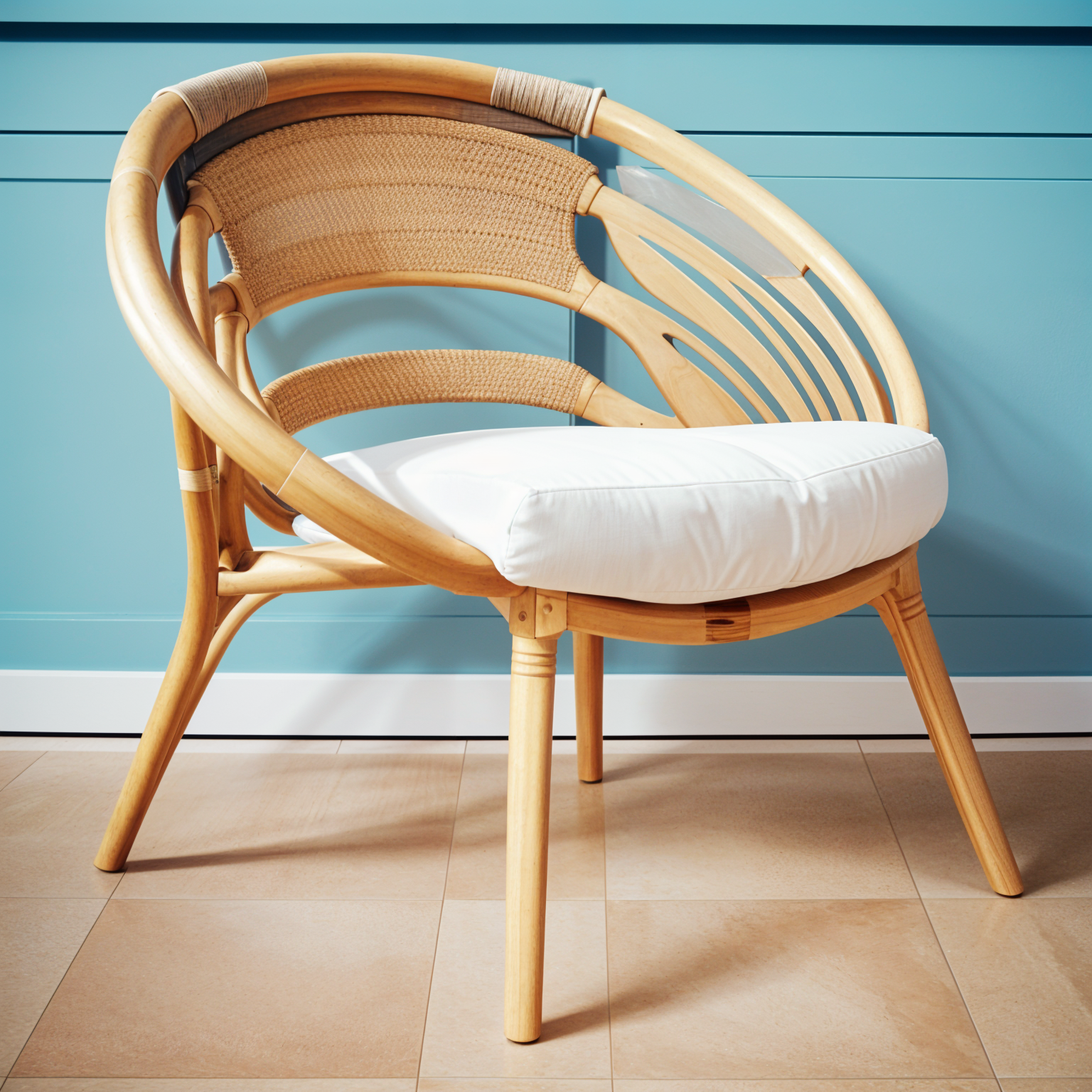 modernist rattan weaving inspired chair wooden wire brush finish legs upholstered seat and back architecture