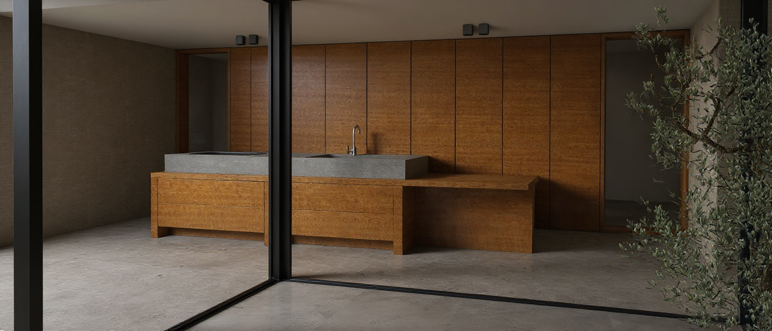 add a white countertop and small stainless steel legs maintain photo colors