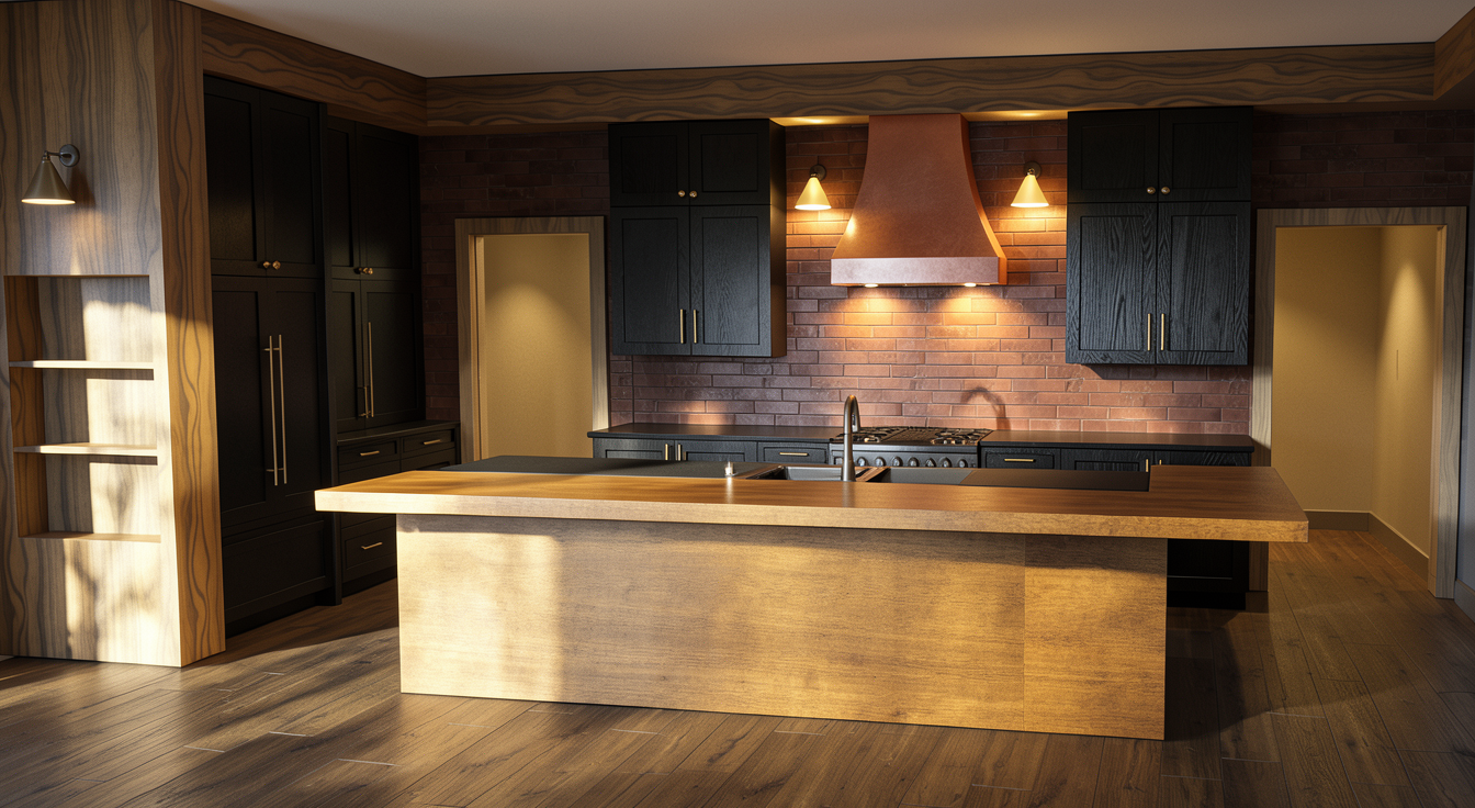 this in montana use native montana trees and vegetation make wood siding ghost wood like jackson hole but leave the rock siding dont change the rock siding just make it more realistic there is rock on the front door entry walls and the walls to the right the wall with 6 windows to the right of the entry has rock make golden hour outside show golden light coming from inside make roof copper standing seam roof make concrete on foundation rock material do not change the shape of the structur or window sizes there is only the center there is rock slab patio on left side of porch keep rock on walls and chimney create a realistic elevation of the architectural design maintaining the original materials of lap siding and board and batten in their correct locations enhance the lighting and shadows for a lifelike effect but ensure that the texture and arrangement of both siding types remain exactly as in the original design make sure to keep the rock on the walls the same here what the background should look like to the right is a field with montana trees far off in distance mountain far off in distance