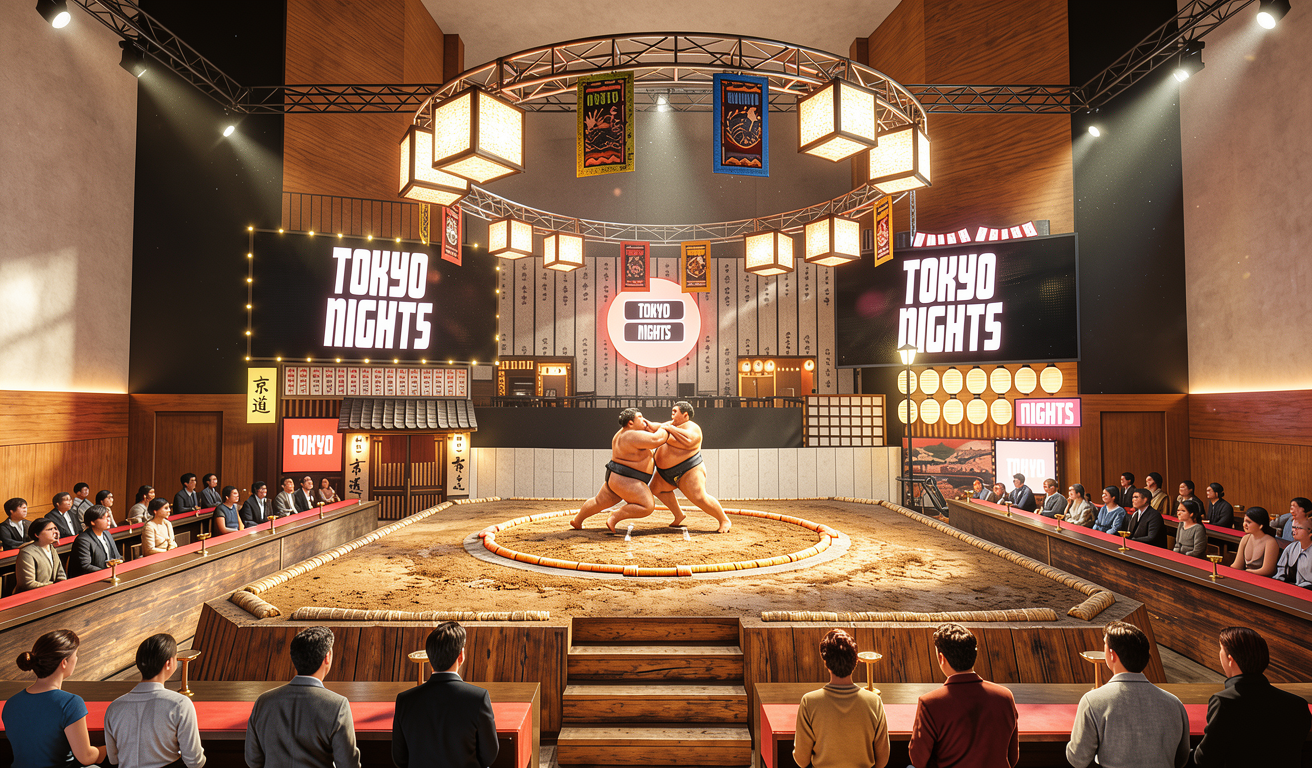add more details to make it realistic add more japanese lightboxes and signs and people dining at the back keep dark night atmosphere