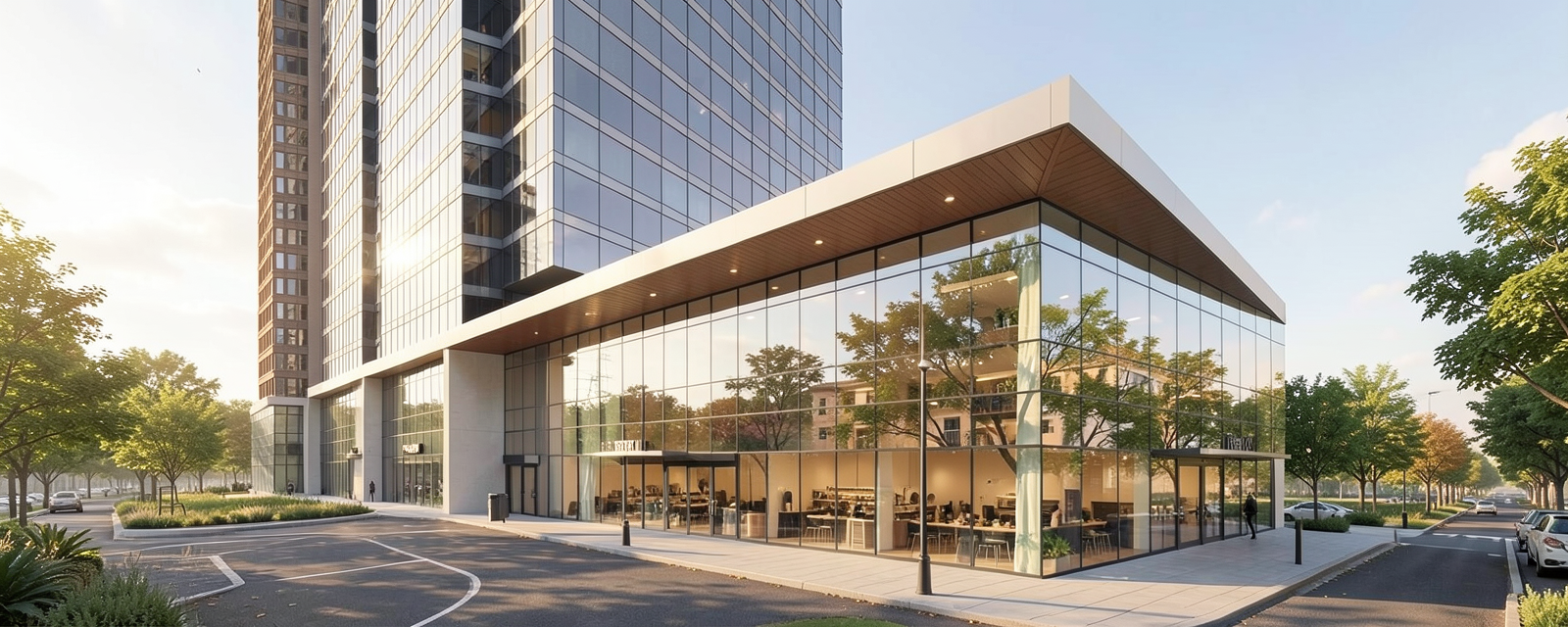 make a sketch line drawing with materials keep massing and add retail at ground level remove cars