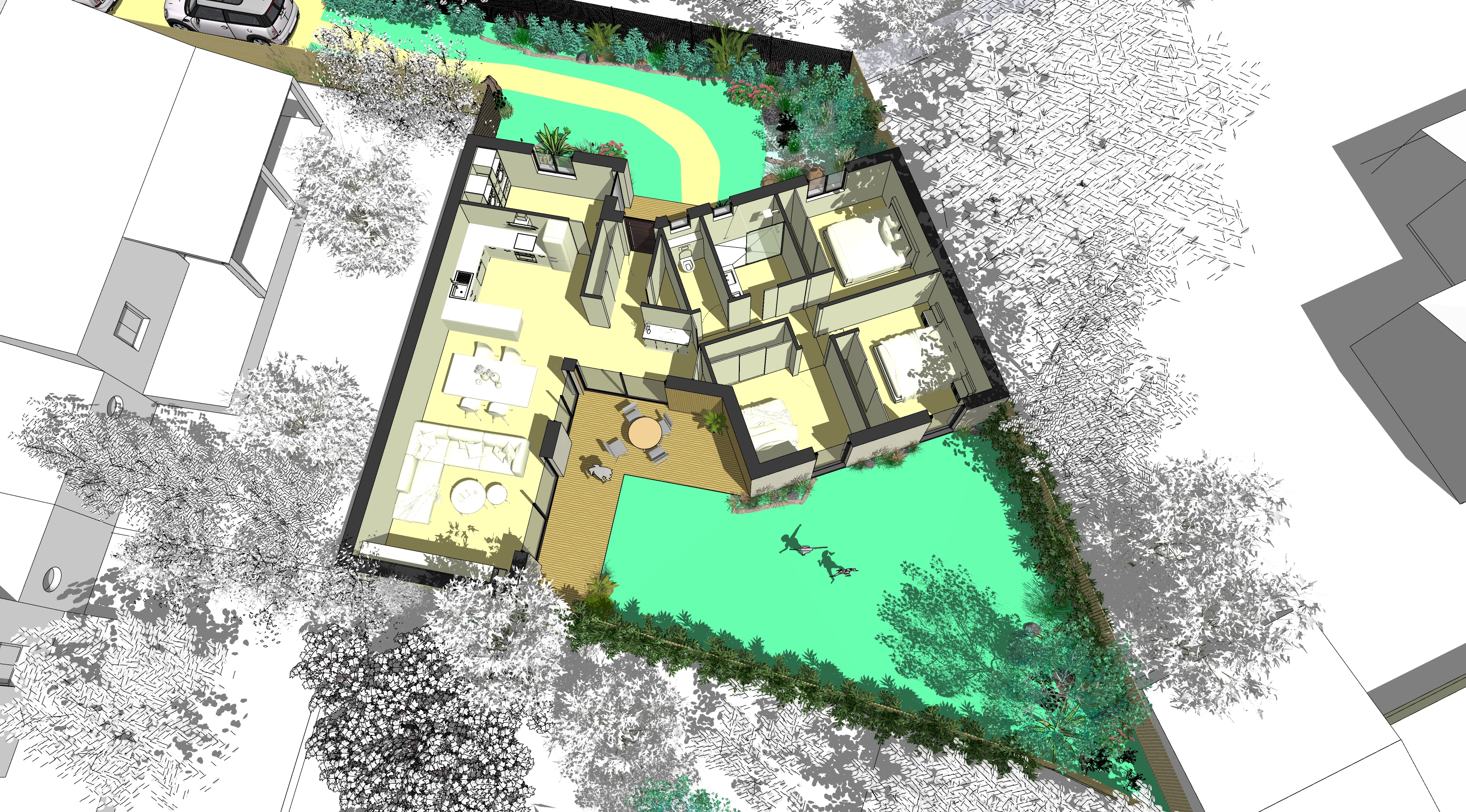 aerial shot cut axonometric view