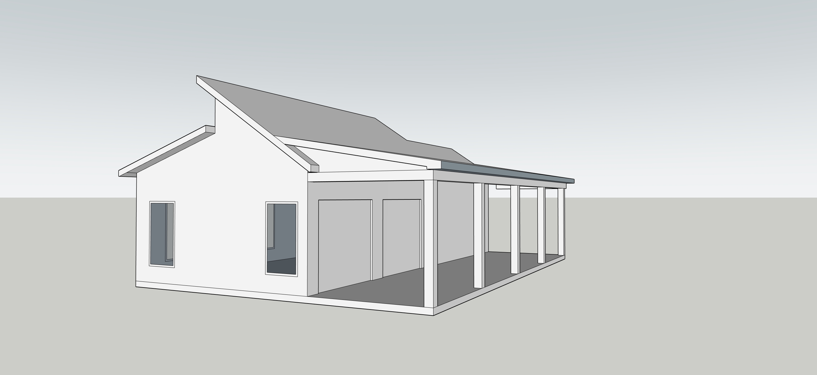 modern design with dark color materials wood posts wooded lor make realistic add landscaping siding to be dark grey metal siding glass garage doors under porch