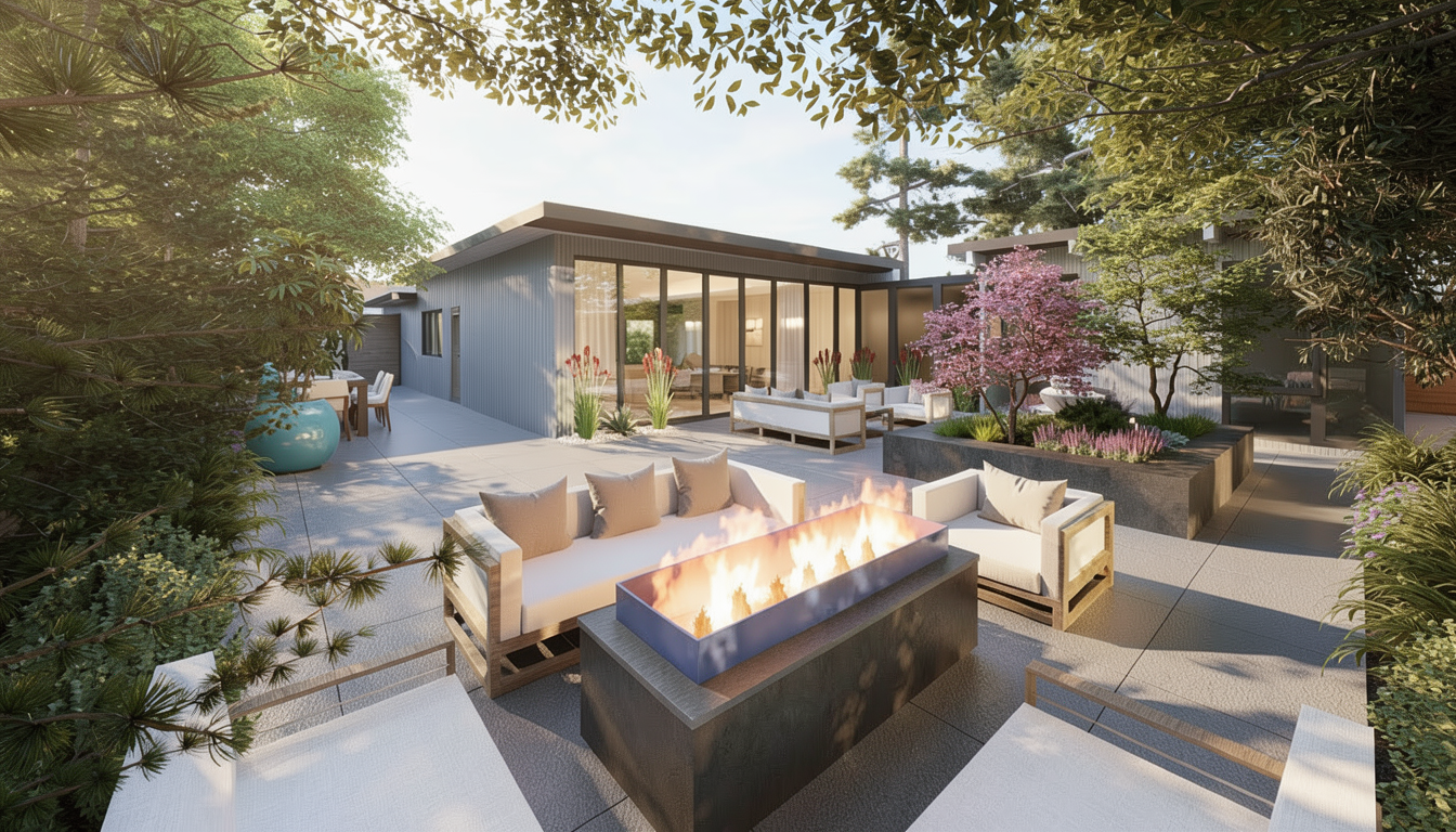 render this i want the table to be timbner and the chairs to be material i want the light turned on and the basket weave to be slightly roated tuen the chairs into stripy materiatl smmall red striped on cream fabric also make french doors a timber colour show blinds on skylight make a little bit hand drawn but subtle