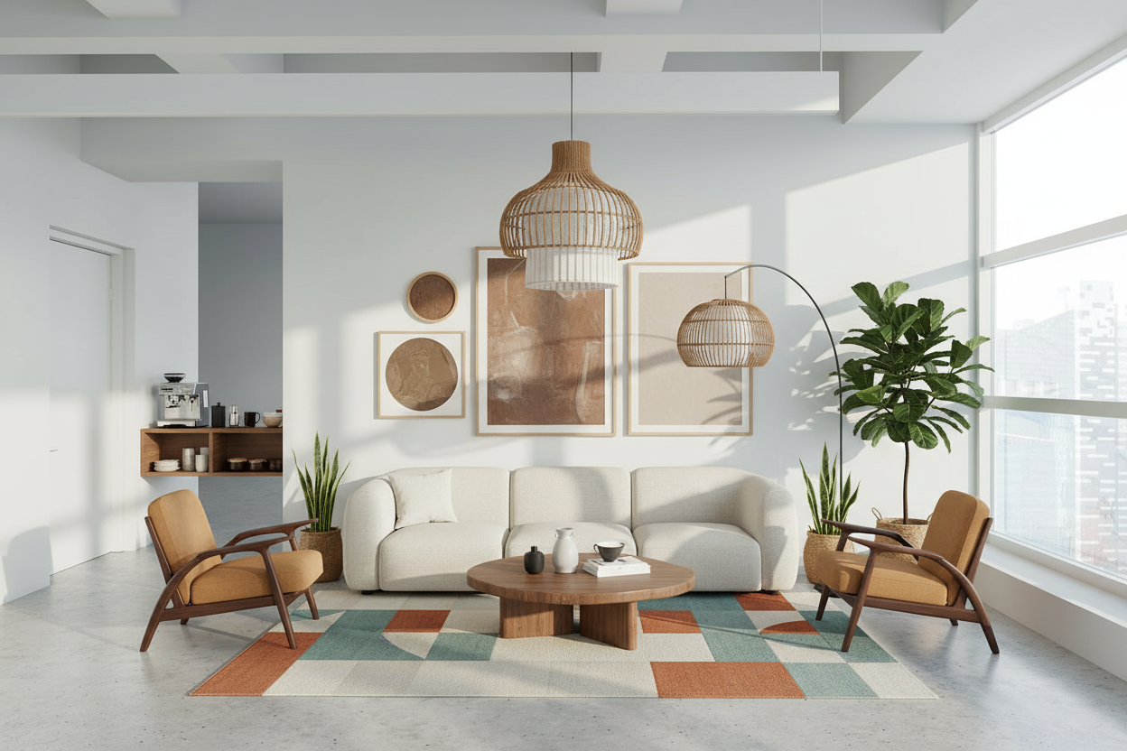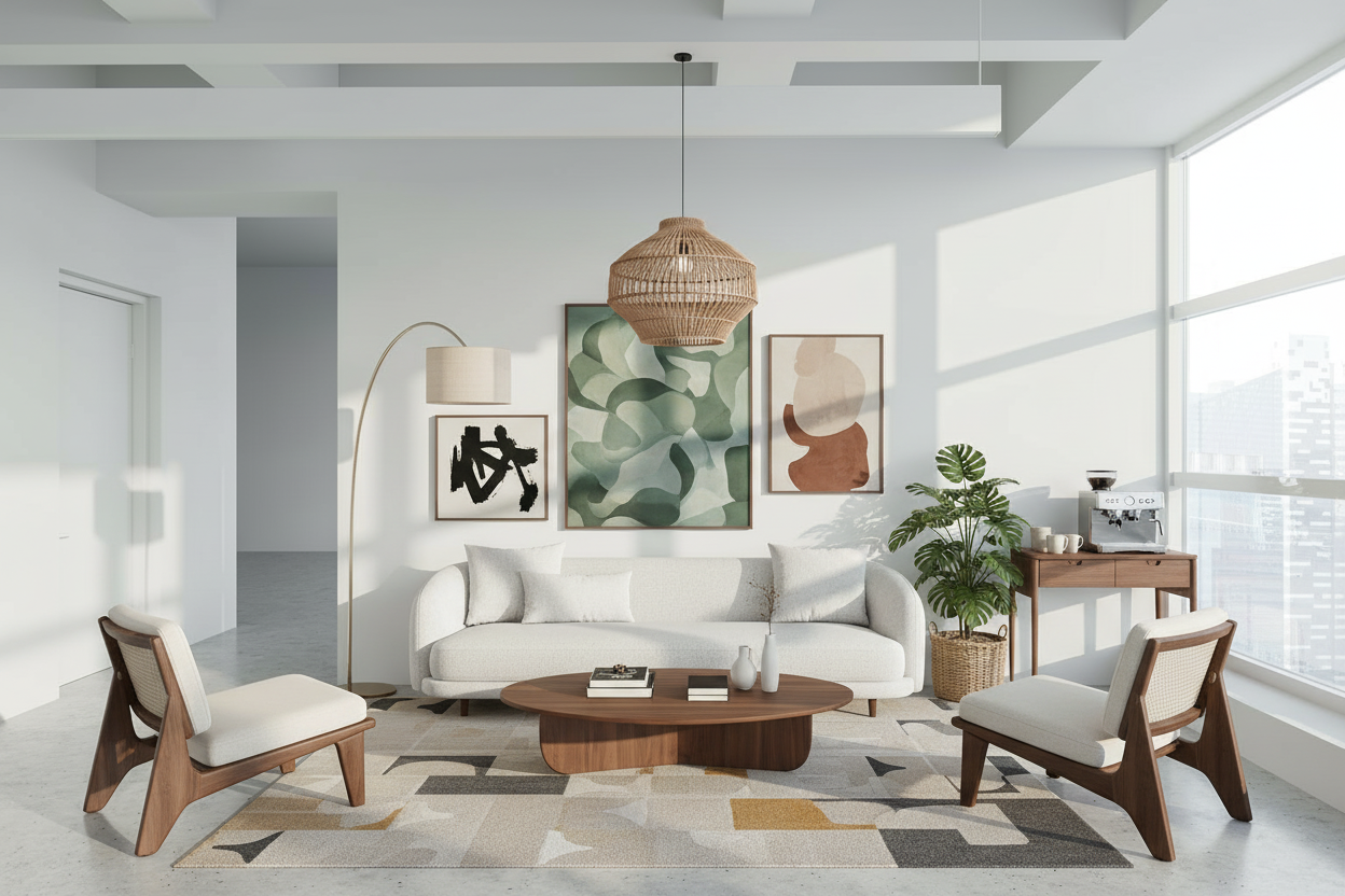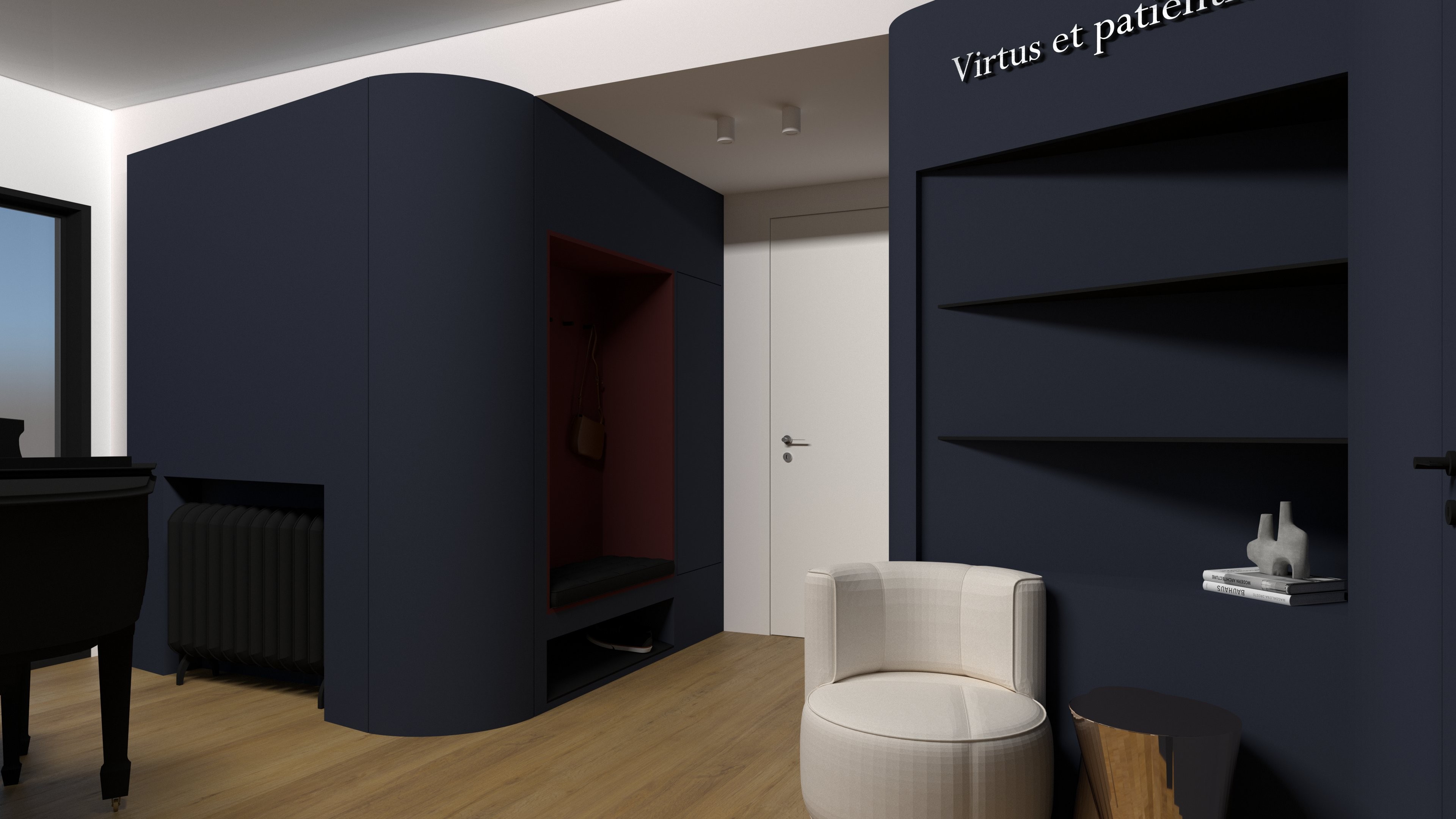 put hidden lights at the shelves make the lightning a bit warmer and improve the quality of the fabrics