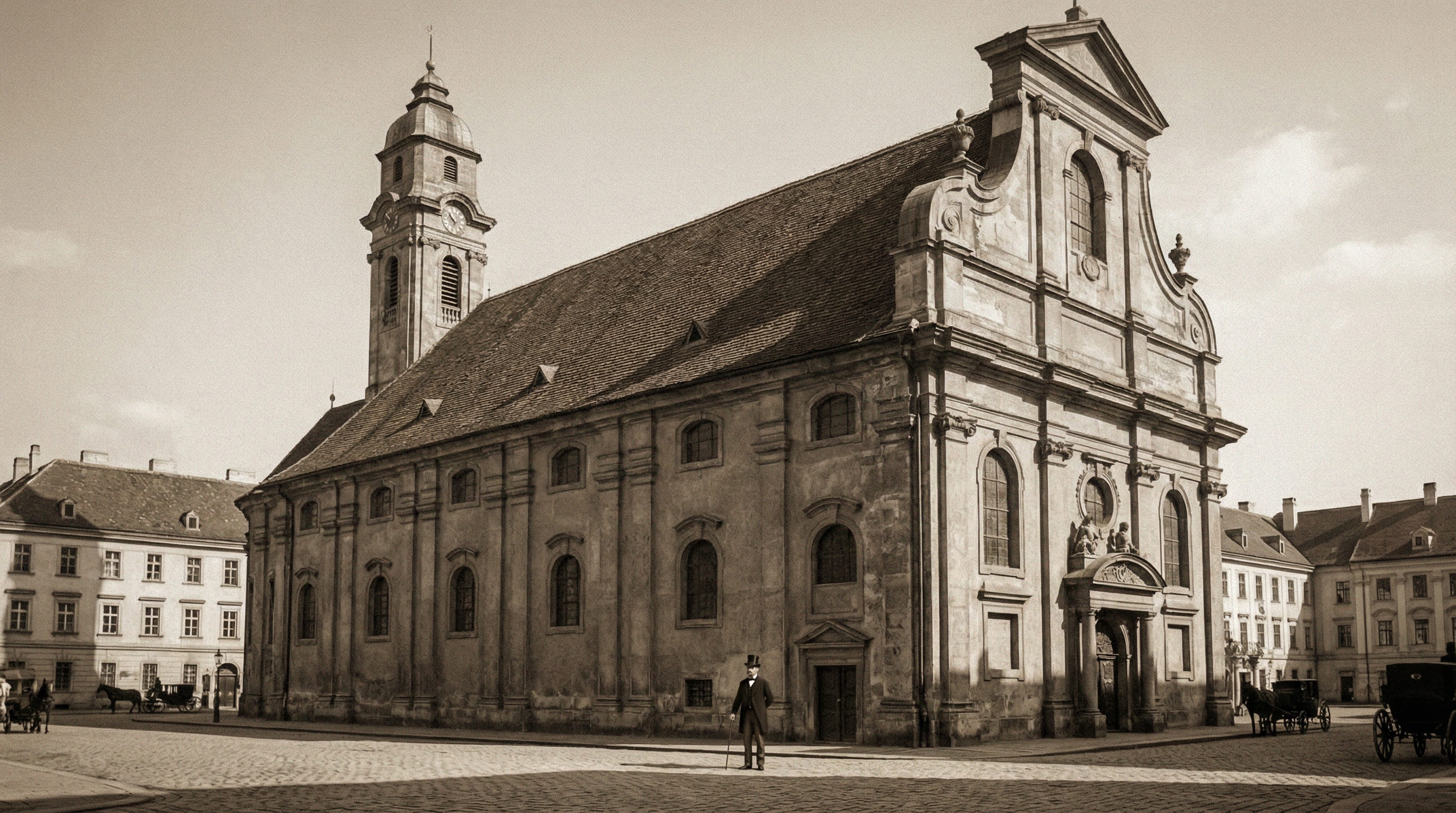 restaurated renovated facade 1800 s mood remove background buildings grey zinc tower roof renovated tower walls renovated fish scale tile on the main roof