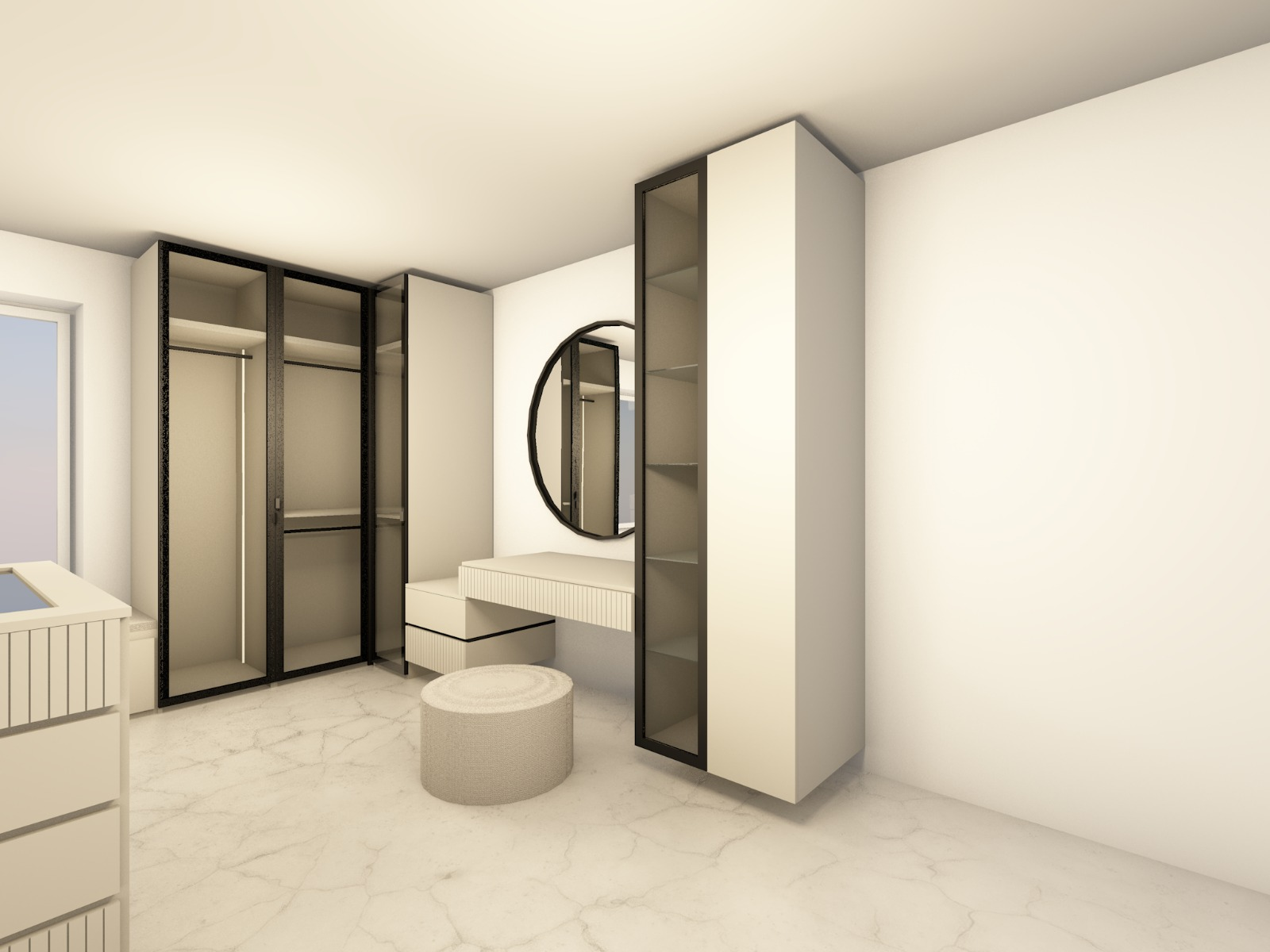 modern luxury walk in closet accessories soft colors no wood keep original nodes black frames and black side panels