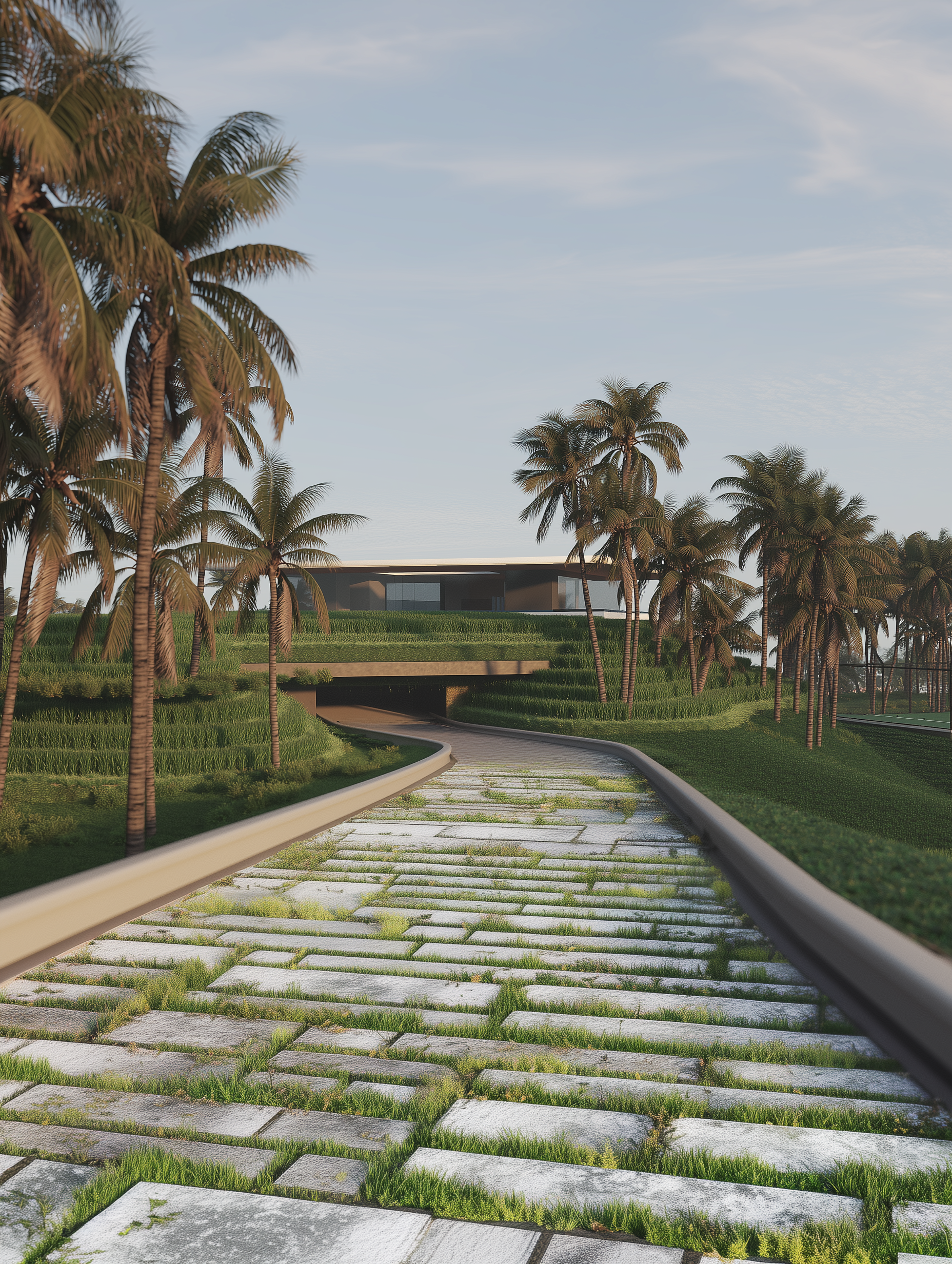 blend the overall tone of the existing render drawing for a more cohesive and natural look while enhancing material details lighting and textures for realism refine surfaces vegetation and shadows with subtle depth and clarity keep the angle and composition exactly the same without altering the original design or layout