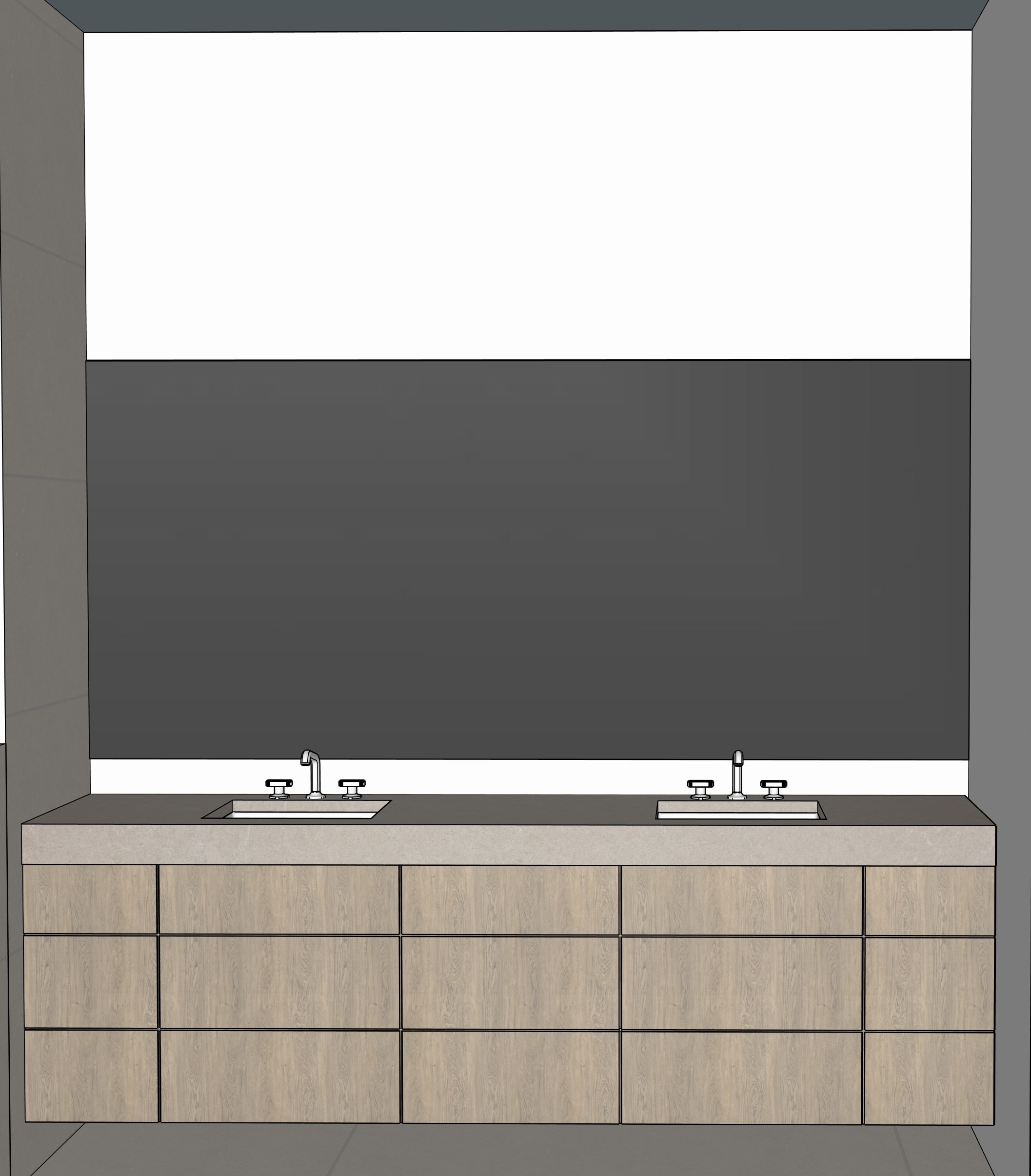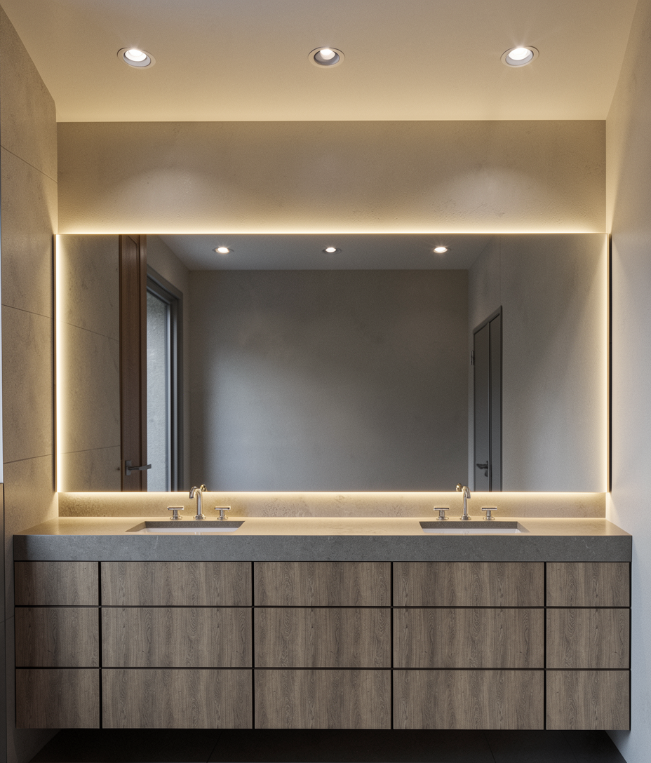 keep everything the same except for instead of the recessed lighting make it into a modern track light with four lights and black