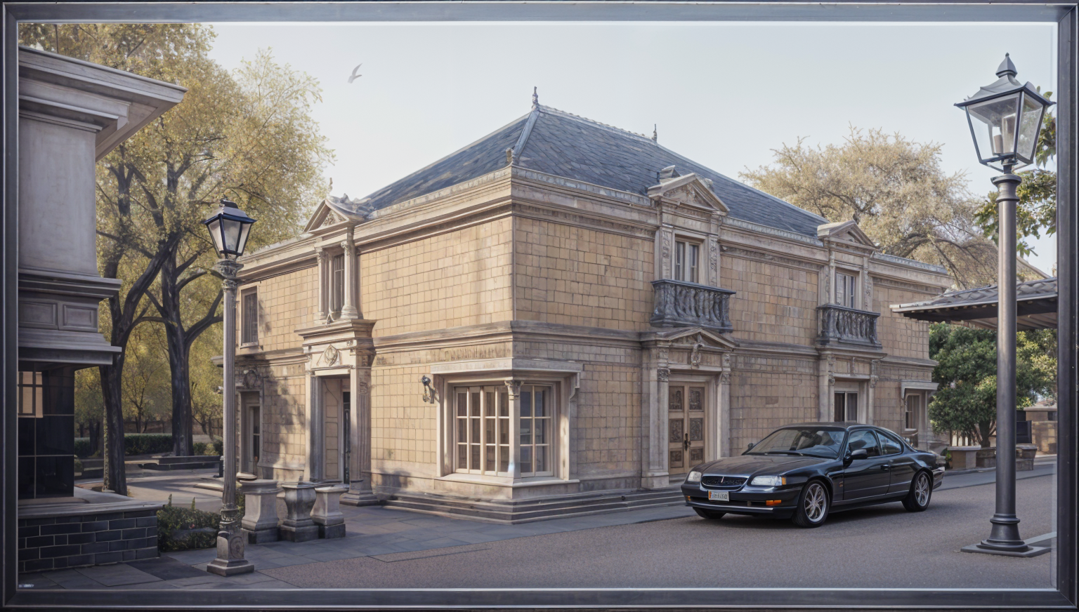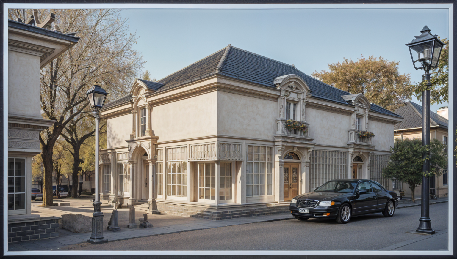 minimalism wide angle shot autumn mood architecture