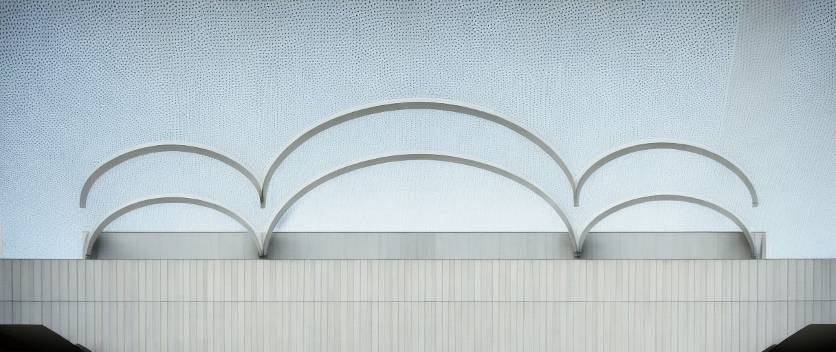 minimalism exterior shot big tied arch pedestrian bridge arch uses circular stee architecture
