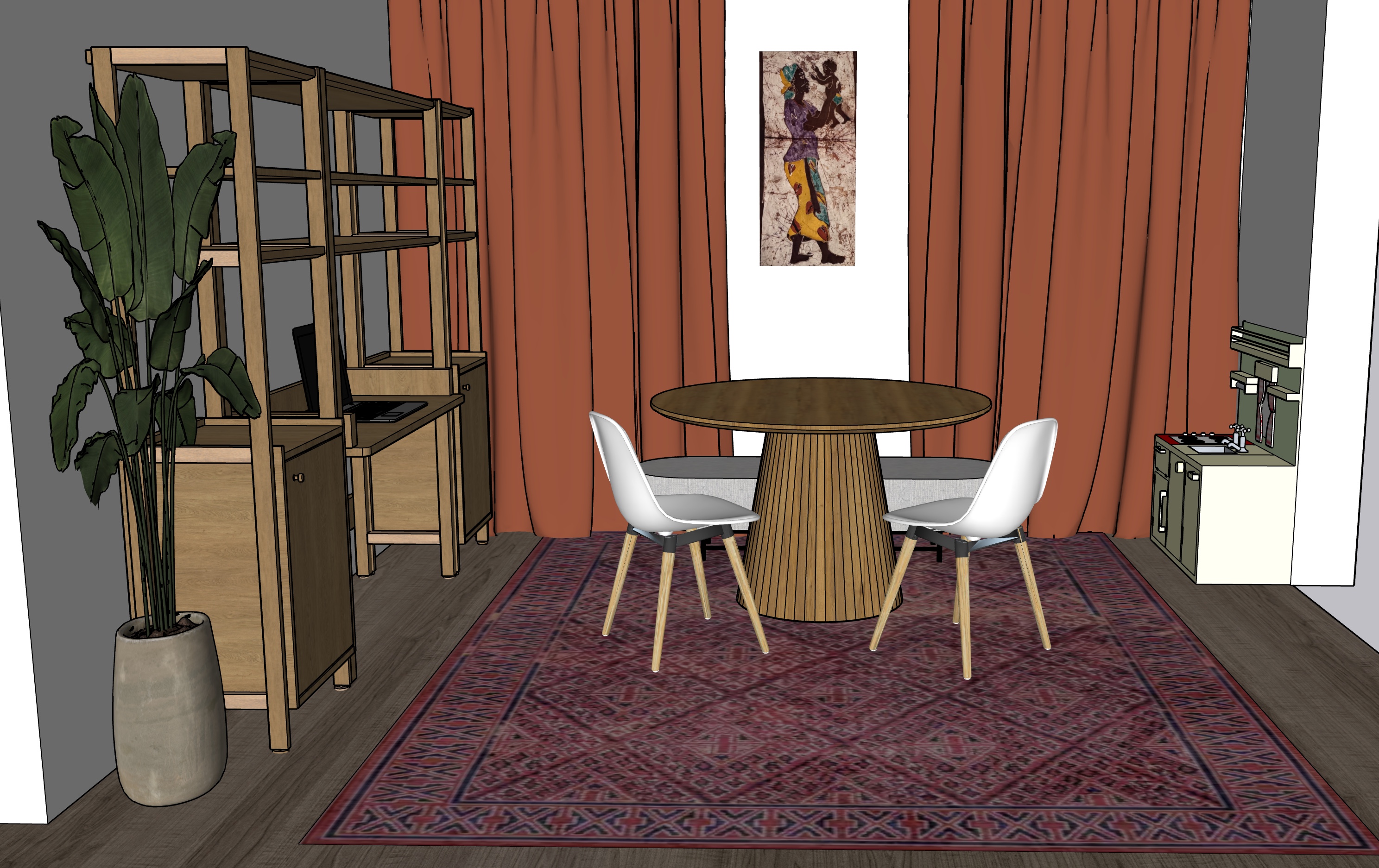 please keep everything the same just make it look realistic and add some plants and candles on the shelves