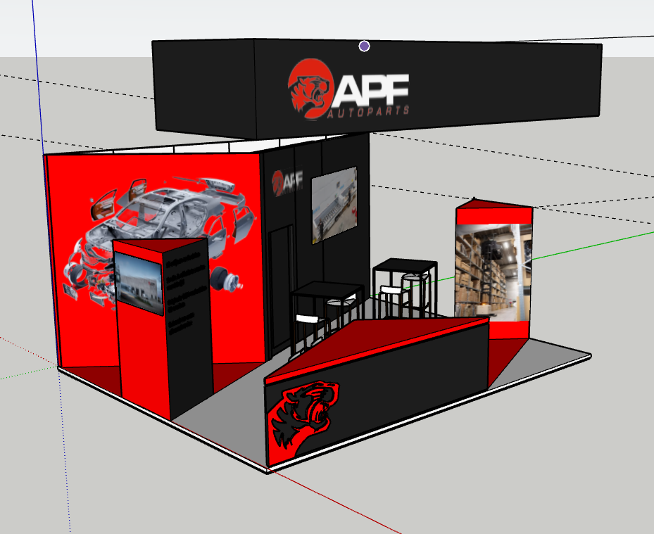 exhibtion hall with business people walking in and around the booth atmosphere lighting