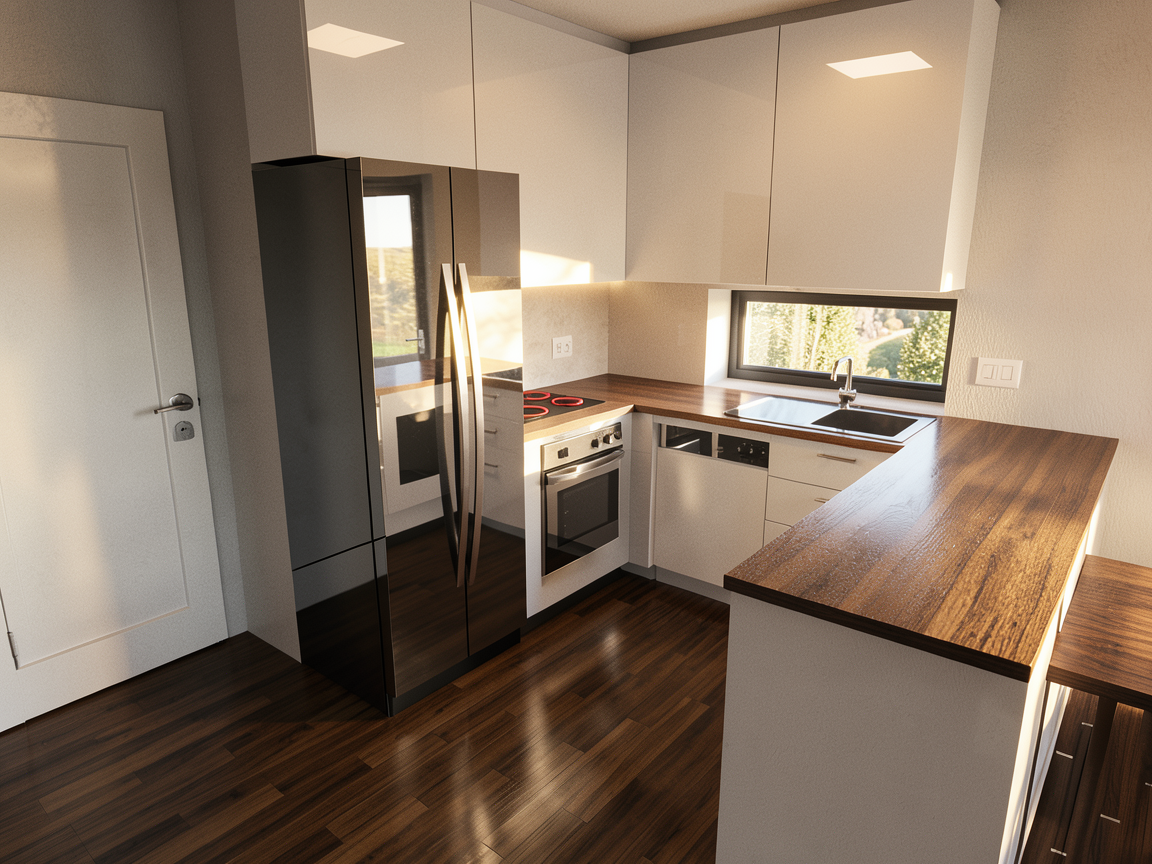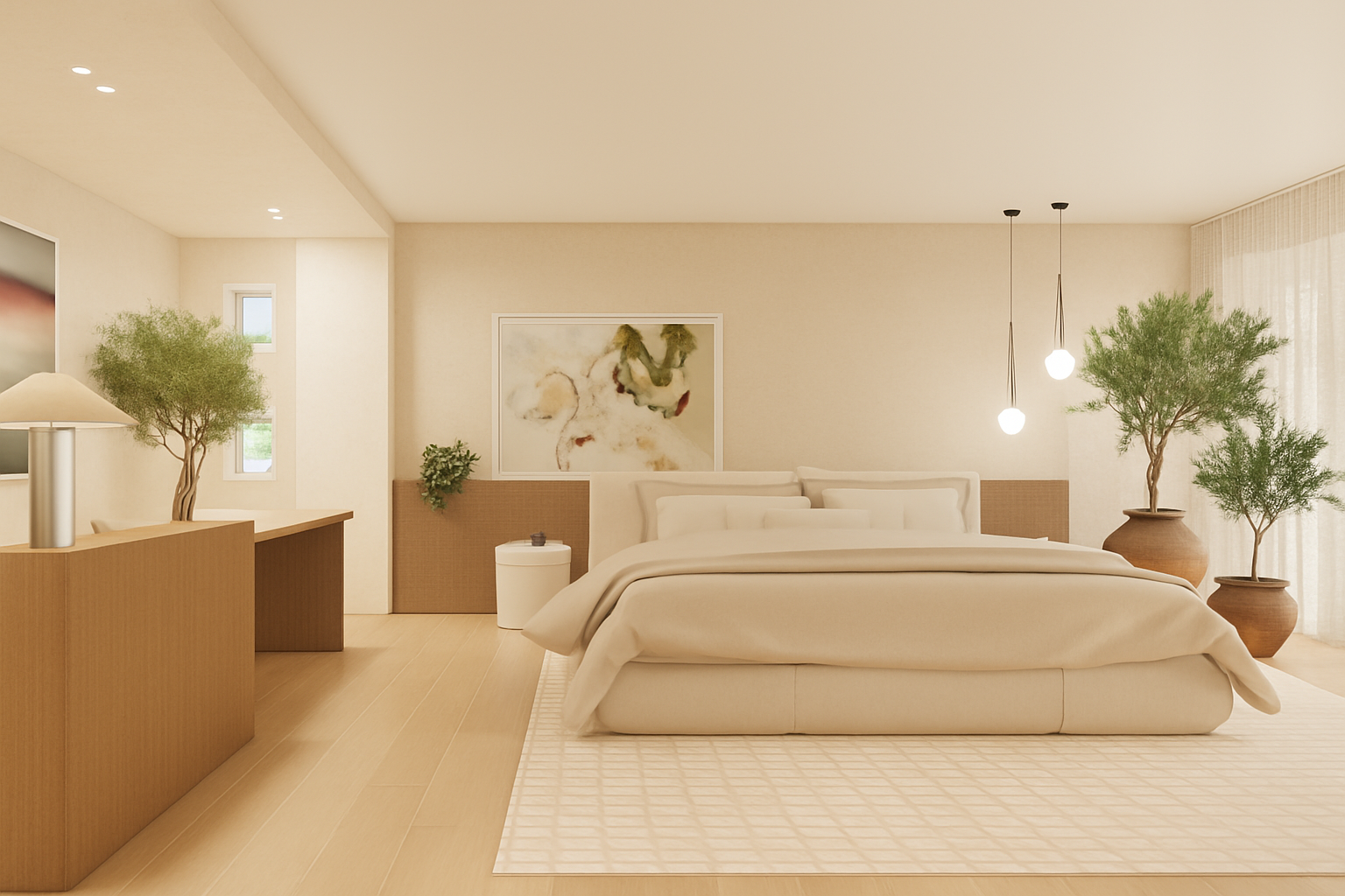 please make the lighting soft even warm and bright keep material as they are shown in the image the desks tops are white the console is navy and a shown in the image the white board is interactive the walls are white