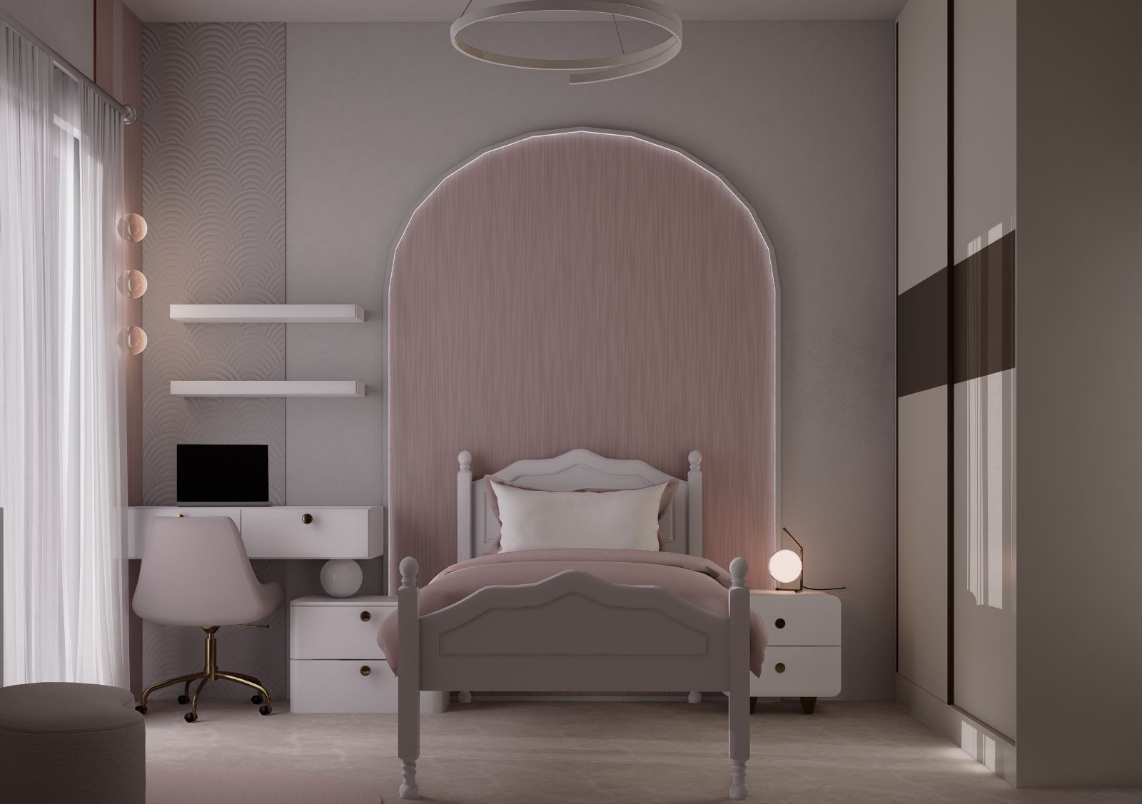make the floor tile off white and change to a white wardrobe