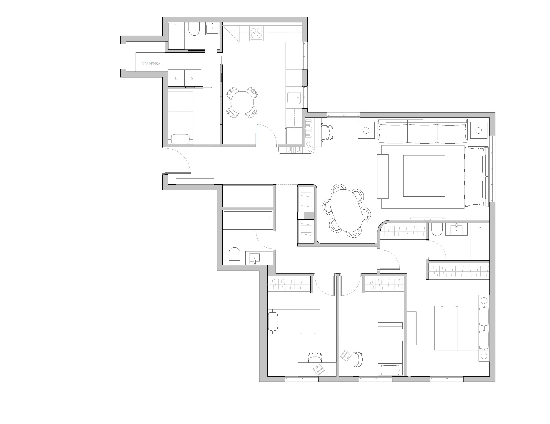 convert this floor plan into a architectural isometric 3d view of a full house show the space from an elevated angle with furniture walls and details visible wood light floor and beige and white furniture use the same furniture as shows on the plan do not change the orientation of the floorplan