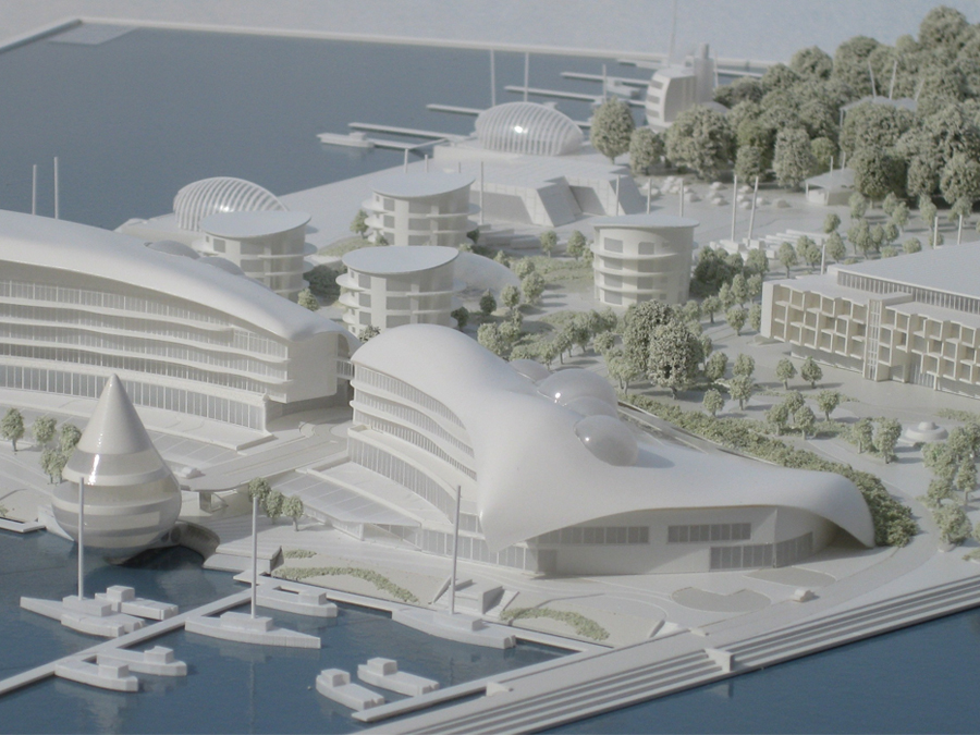 transparent glazing building cluster of museum and halls in bay area with timber roofs the form of the building follows the curve of the wave