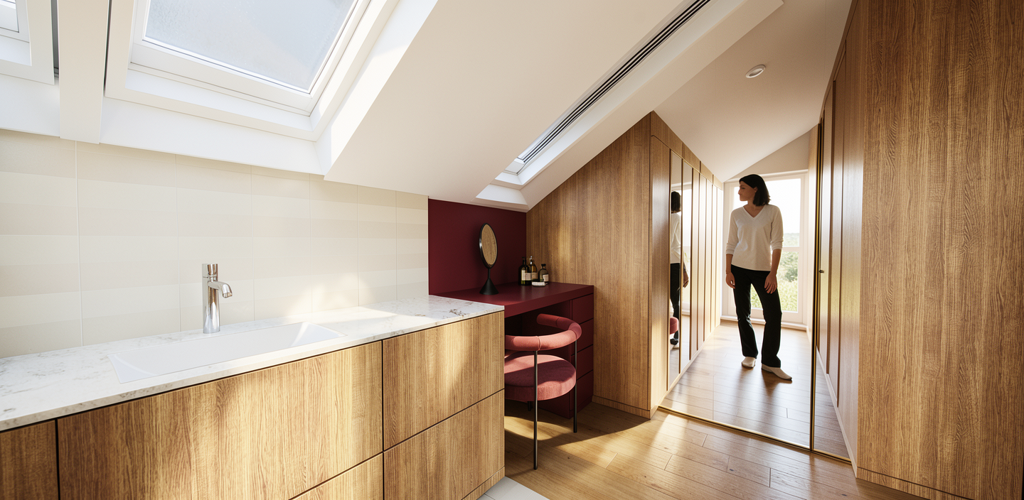 use the uploaded rendering as the base image and the uploaded logo file as the exact artwork to add edit the rendering in only one way place the logo on the building as signage in exactly two locations using the right side of the building as viewed in the image location 1 place one logo centered horizontally above the man door on the right side of the building location 2 place one logo centered in the gable end of the far right side of the building use the logo exactly as provided with the same colors proportions and transparency background treatment from the uploaded logo file do not redesign simplify restyle recolor crop stretch or reinterpret the logo mount each logo naturally to the building surface with accurate perspective scale lighting and shadows so it looks like realistic building signage do not change any other detail in the rendering change nothing except adding those two logo placements preserve the image exactly otherwise same building design same materials same colors same doors trim roof windows pavement landscaping sky shadows lighting reflections camera angle framing background people and all other architectural or scene details do not retouch clean up enhance add remove move or modify anything else in any way output a single edited image with only those two added signs and zero other changes