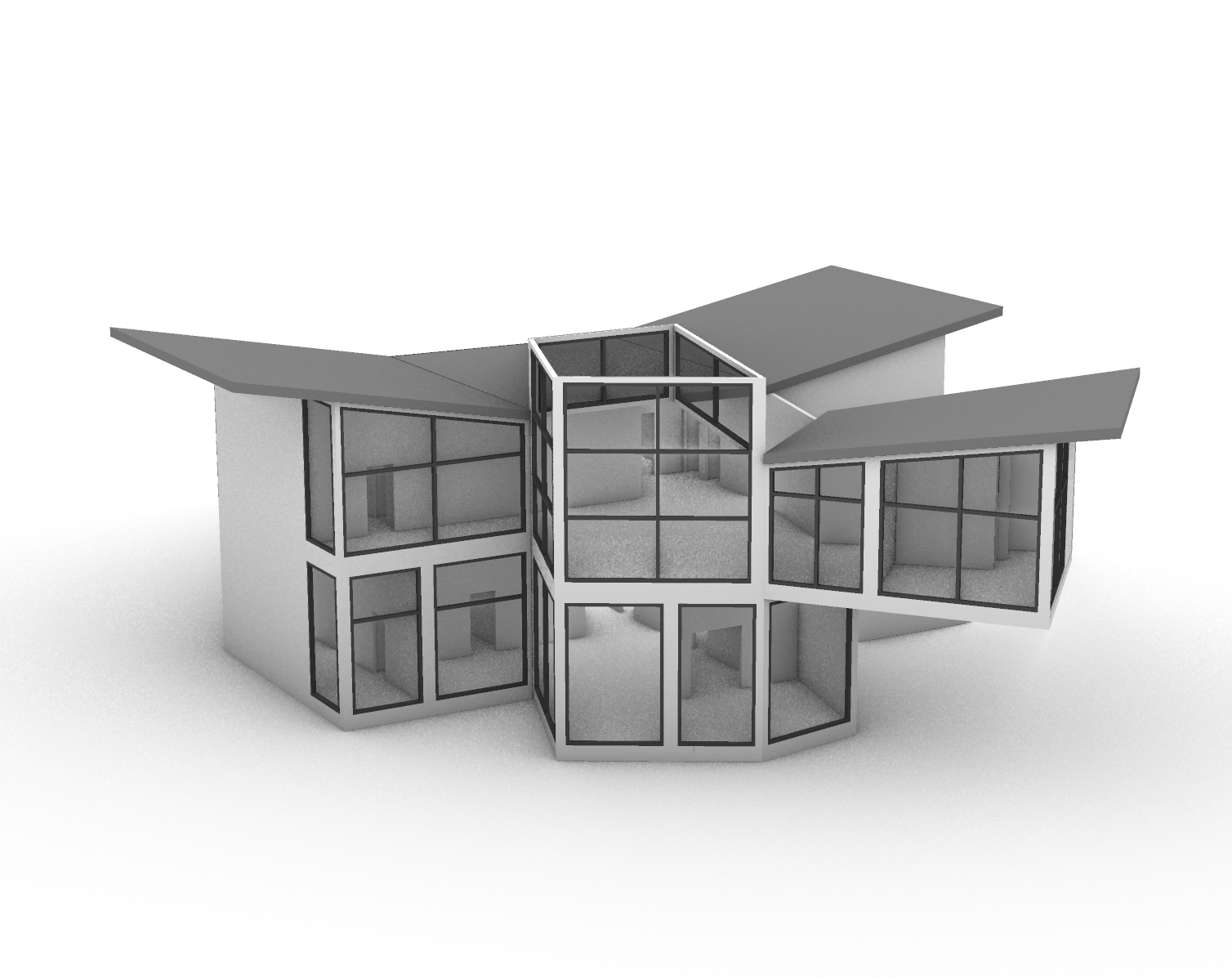architectural watercolor rendering of a small contemporary research precise and realistic architectural detailing surrounded by mountain pines and mist below rendered with crisp building geometry and realistic materials background and edges dissolve into loose watercolor washes and white paper edges not full bleed with soft unfinished fade around the image visible pencil and ink linework with light technical annotations artistic yet grounded balance of precision and painterly abstraction calm morning light concept architectural visualization style