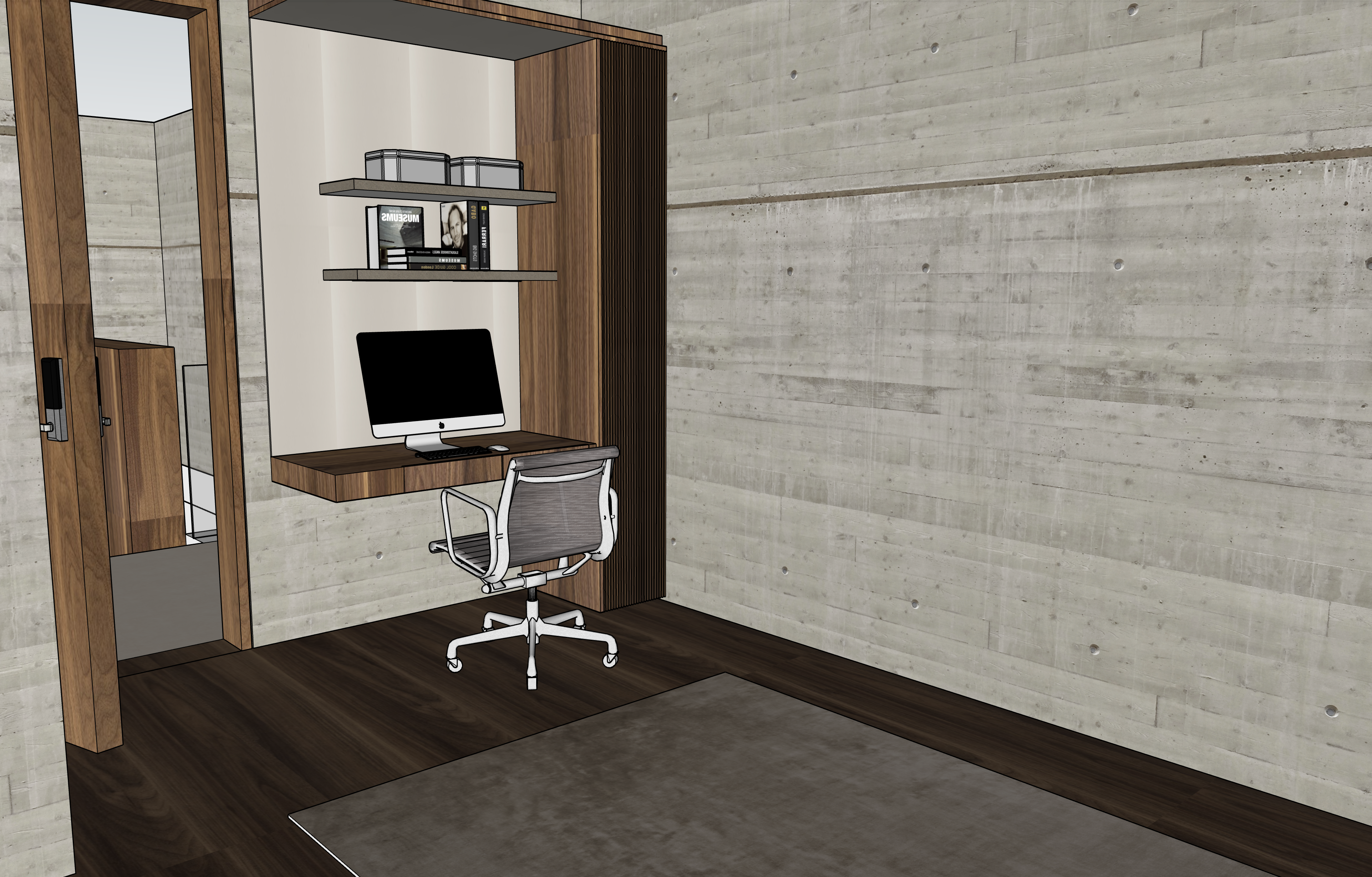 minimalistic contemporary residential design wooden floor andreu world chairs home office library lazy concrete wall taupe color soft rug