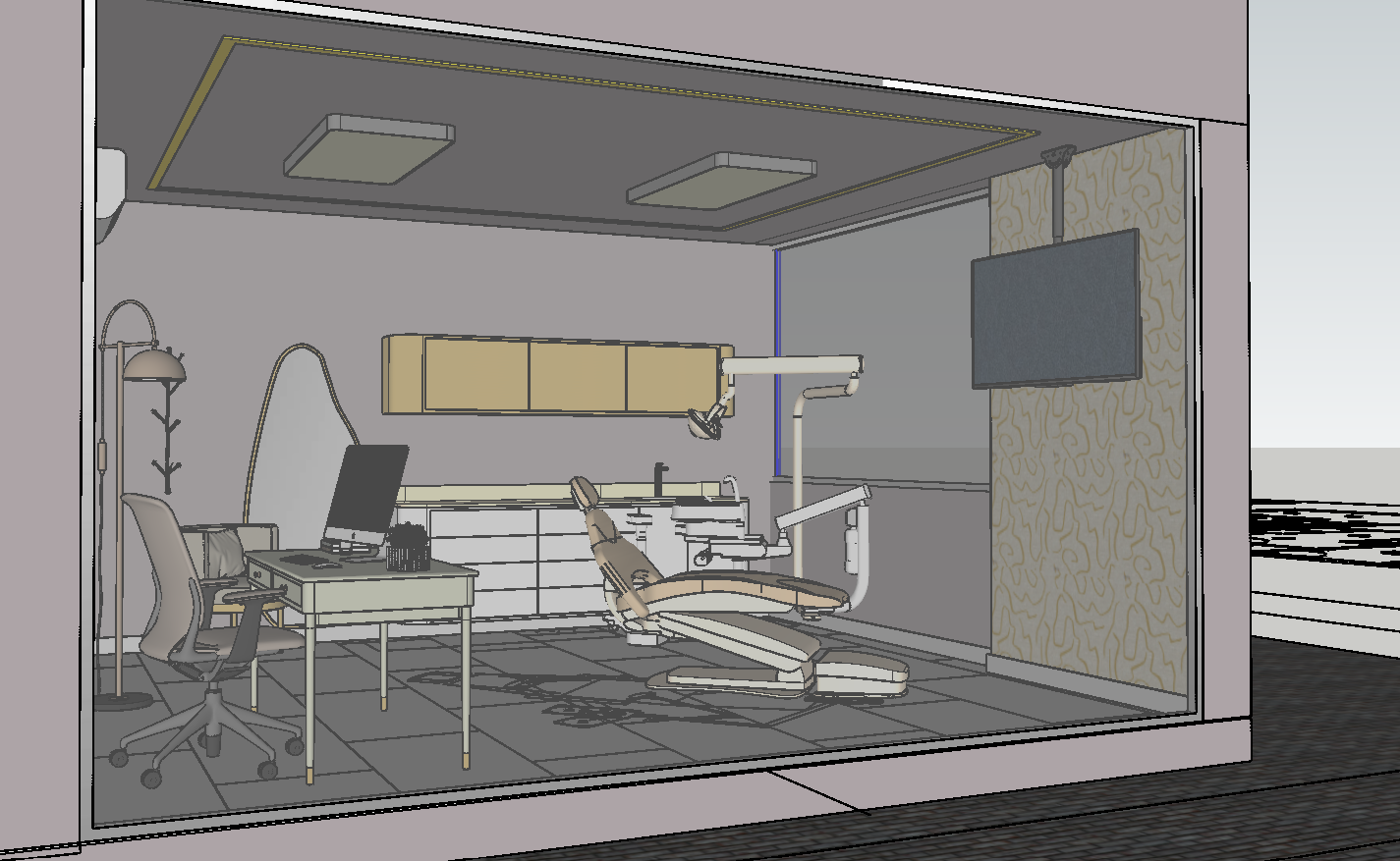 modern dental clinic in cream colors gold upper cabinet color sufficient lighting shiny ceramic in cream tones with a natural stone look on the floor