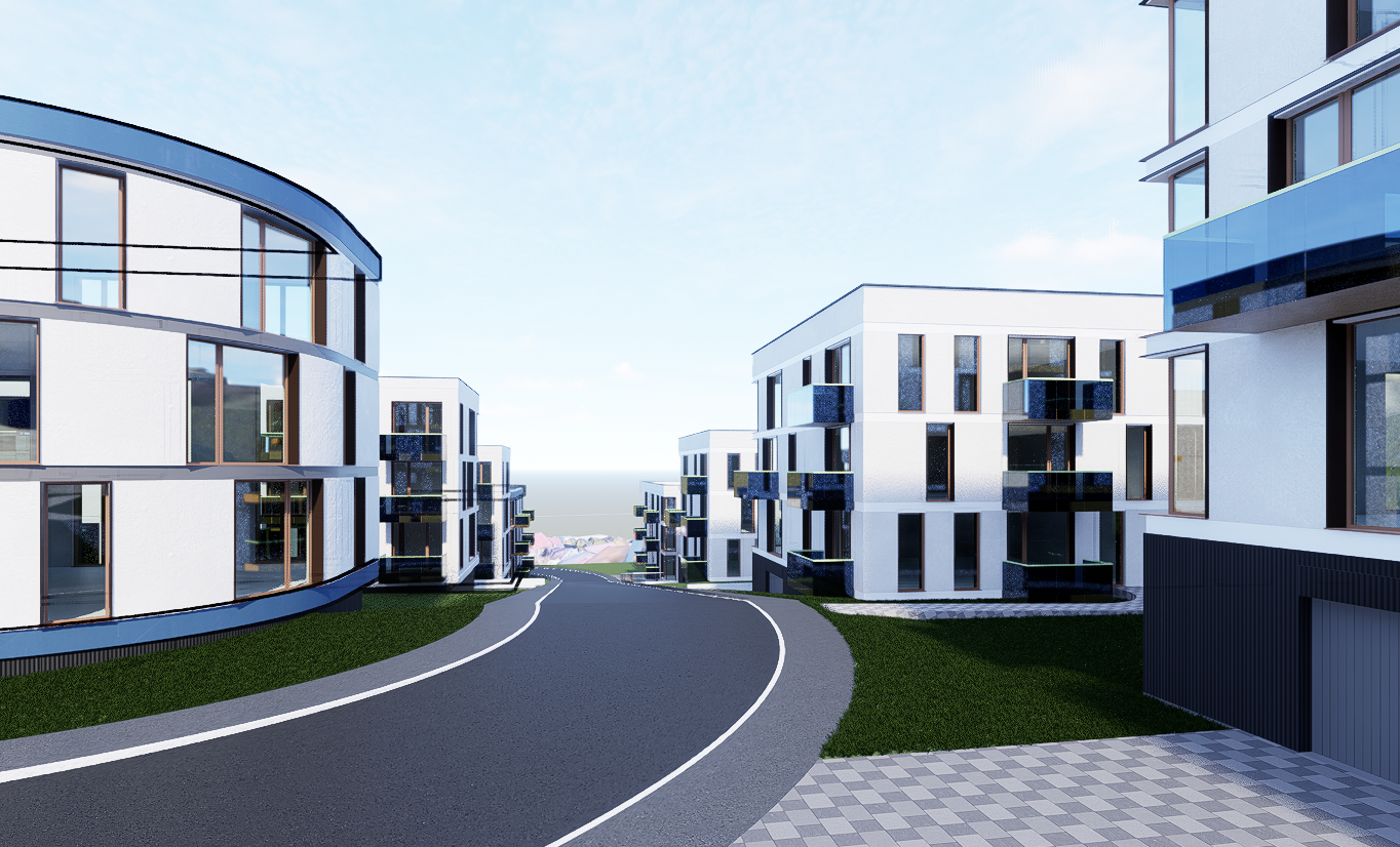 generate ultra realistic 8k pbr textures for a modern residential building facade white painted brick with clearly defined mortar joints slightly recessed light grey subtle surface roughness micro cracks light weathering natural tonal variation no flat surfaces strong normal and displacement detail glass architectural glass semi transparent realistic environment reflections sky landscape buildings while keeping interior visibility correct ior 1 52 slight natural imperfections clean but not perfect grass lawn type grass with natural green variation no oversaturation uneven blade length minor patchiness subtle soil hints fine close up detail soft subsurface scattering window frames ral 050 60 20 karamellbraun powder coated aluminum matte satin finish subtle micro texture realistic light response ground semi worn grey asphalt visible fine aggregate light cracks faint tire wear tonal variation realistic roughness and normal detail global settings 4k resolution full pbr set albedo roughness normal displacement ao physically accurate light response real world scale natural color grading cinematic photorealism do not change the shapes do not change the volumes do not add nature or urban elements in the background make the sky blue with light clouds