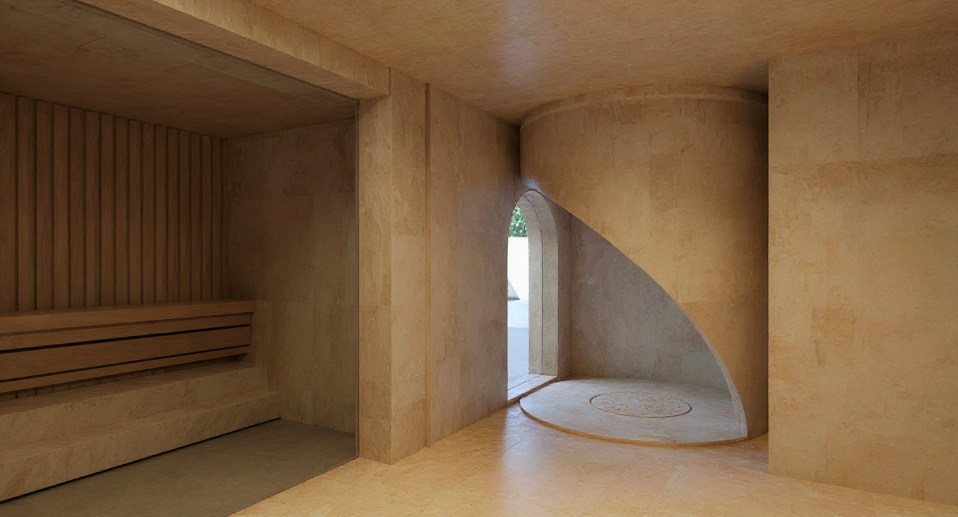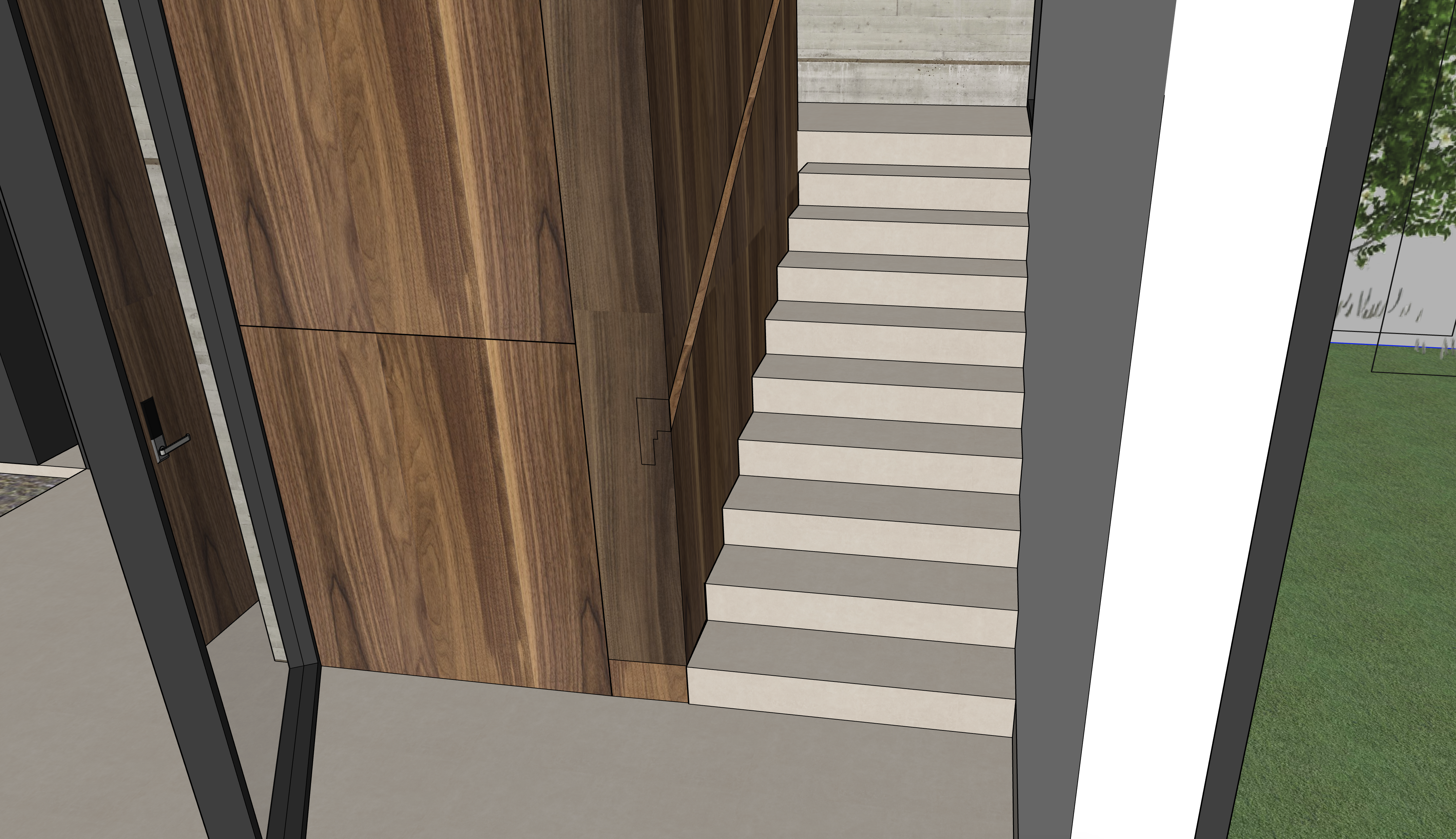 residential design minimalistic contemporary approach staircase with indirect lighting in handrail and curtesy lights on each stairs beige large format ceramic tiles