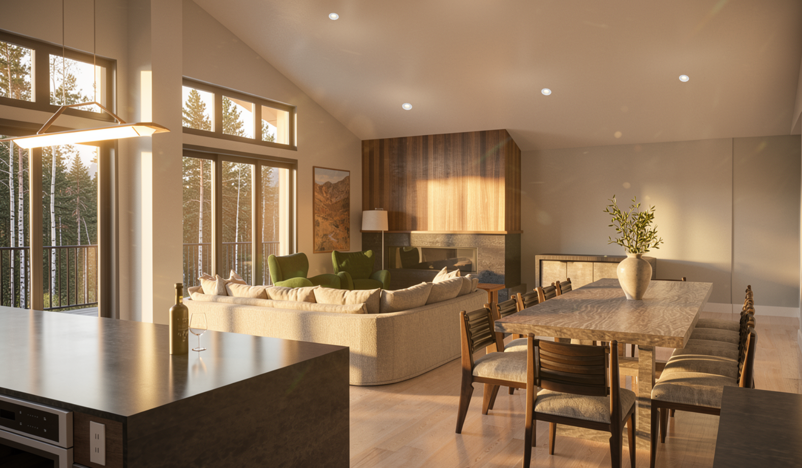 refine this image to look photo realistic and add a neutral throw blanket to the sofa