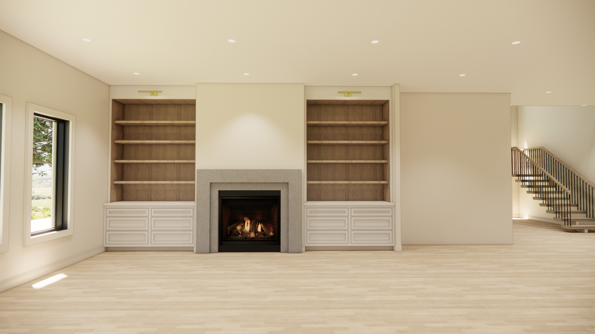 convert this architectural rendering into a highly photorealistic interior photograph while preserving the exact architecture layout proportions millwork details ceiling heights and material selections do not alter the design camera angle or spatial configuration enhance realism through true to life material rendering and natural lighting materials to maintain exactly as designed flooring wide plank white oak hardwood natural matte finish subtle grain variation soft warm undertones realistic plank width and seam spacing walls ceilings sherwin williams origami white sw 7636 soft warm white with accurate undertone smooth level 4 drywall finish no color shift trim and millwork should remain consistent with wall color unless otherwise shown lighting atmosphere introduce natural sunlight streaming through the windows with realistic directional light soft shadows consistent with late morning or early afternoon sun accurate light falloff across floors and walls subtle glow and realistic window glass reflections no blown out highlights balanced exposure like professional architectural photography photography style luxury residential real estate photography shot on a full frame dslr 24 35mm lens eye level perspective straight vertical lines no distortion crisp focus with subtle depth of field natural contrast true color balance soft but defined shadows rendering quality notes eliminate cgi flatness add micro texture to wood grain and drywall realistic ambient occlusion in corners and under millwork no material substitutions or design modifications