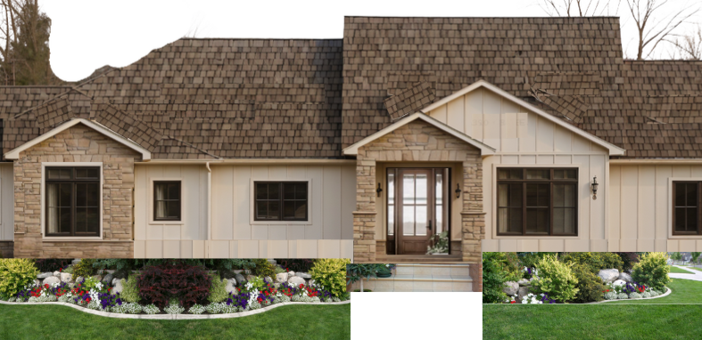 keep architecture design details and colors all the same replace board and batten siding on the front peak with a stucco the same color as the siding