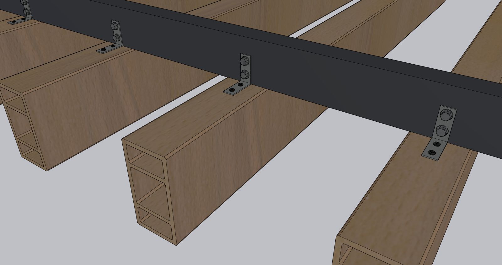make it more realistic maintain the finish of the new black metal joist maintain the colors aluminum brackets aluminum gray hexes black metal screws maintain the finish of the beams that are made of wpc color teak