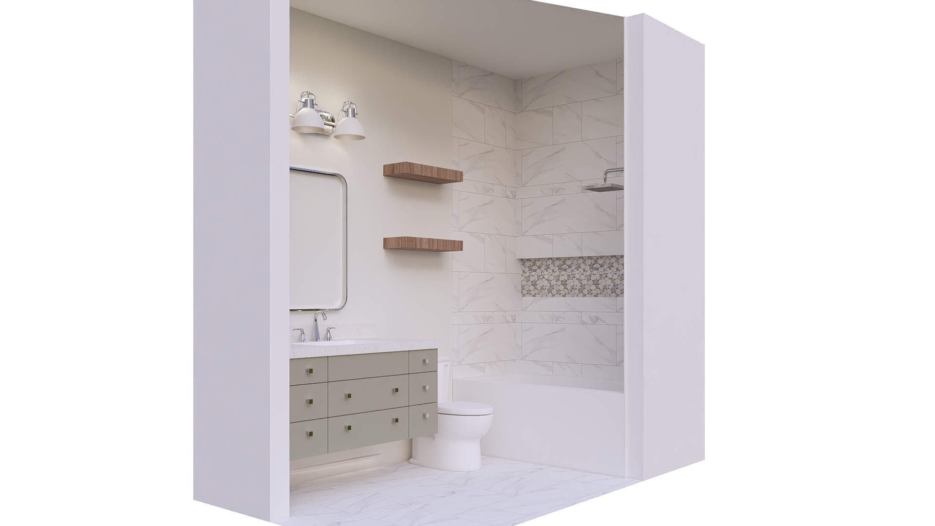 make the interior bathroom look photorealistic and use the colors assigned in the original drawings