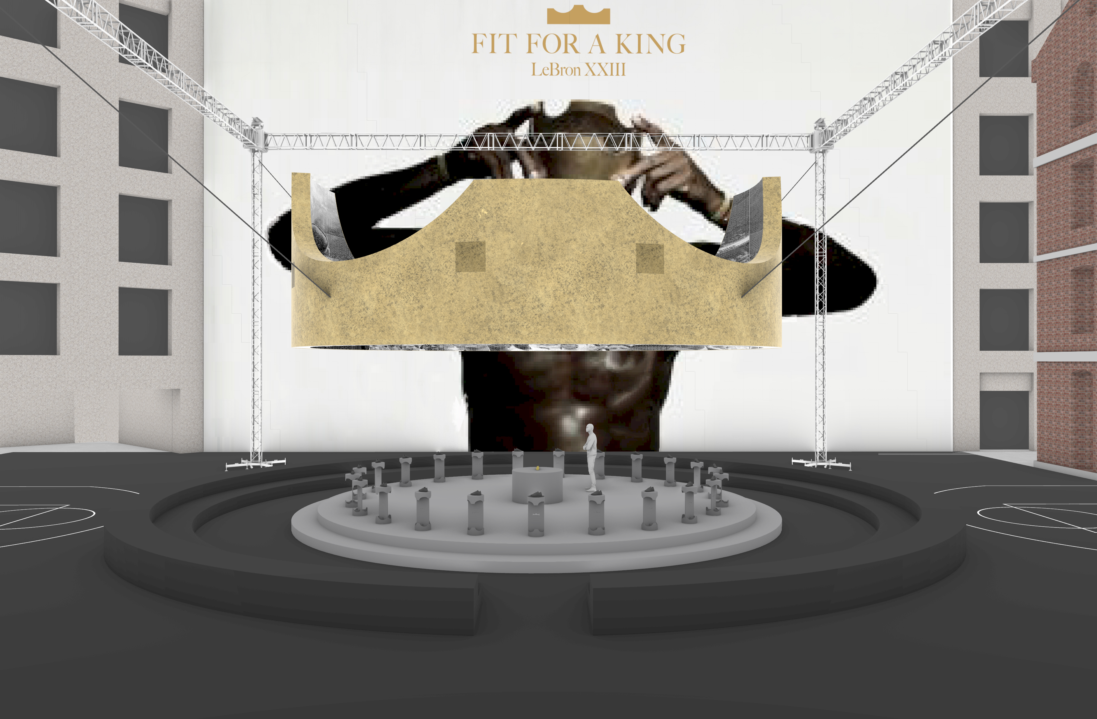 use the existing rendering and add 500 people standing on the floor around the stage do not add any other element nor change the colour architecture