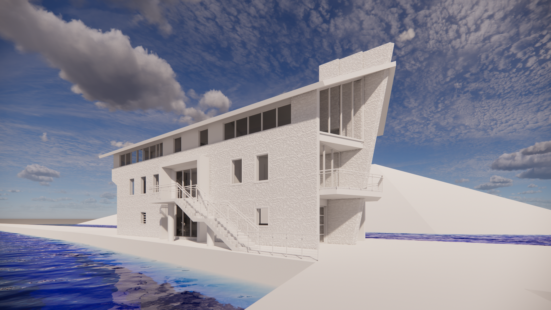 exterior shot make this building look like a cabin in the woods add trees architecture
