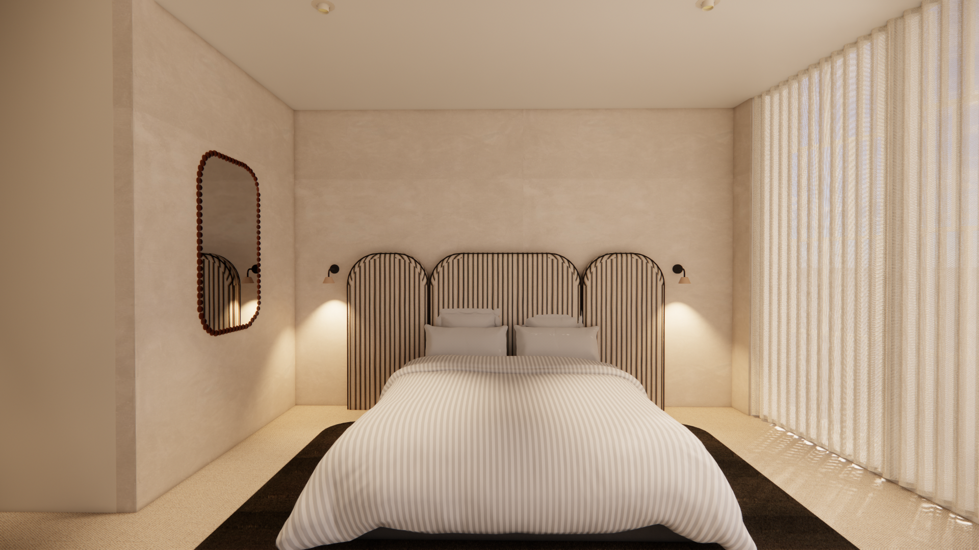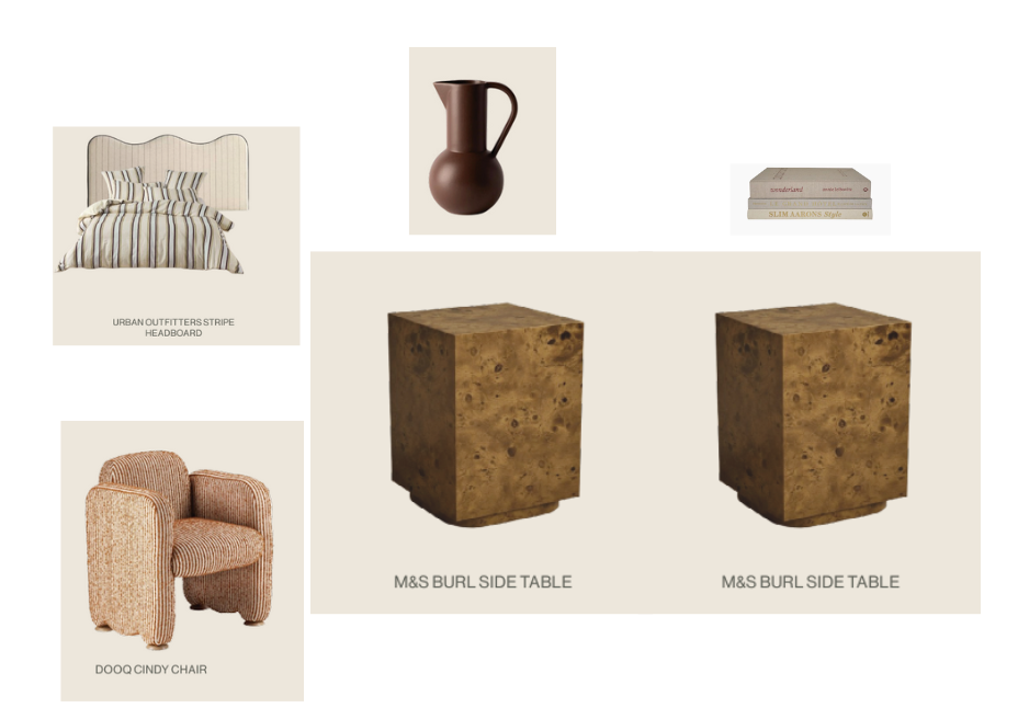 exterior shot make sure there are two side tables which are the burl sidetables make sure the side tables are next to the bed