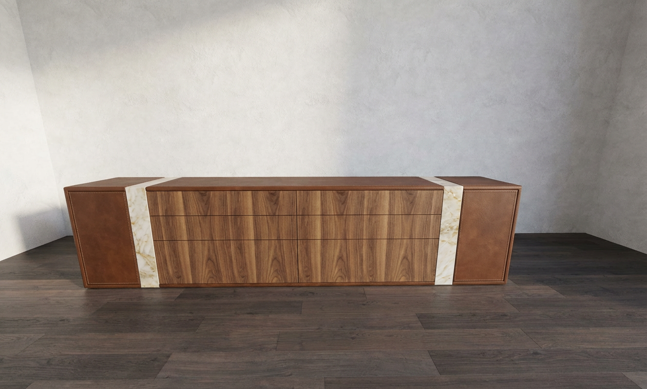 create an ultra realistic luxury interior render of the existing kitchen do not change any materials textures colors finishes or design elements keep all cabinetry wood tones marble surfaces appliances lighting fixtures ceiling details and furniture exactly the same enhance realism with accurate reflections soft natural daylight high end global illumination and physically correct shadows maintain the same camera angle composition and layout increase clarity depth and material richness while preserving the original design exactly as shown