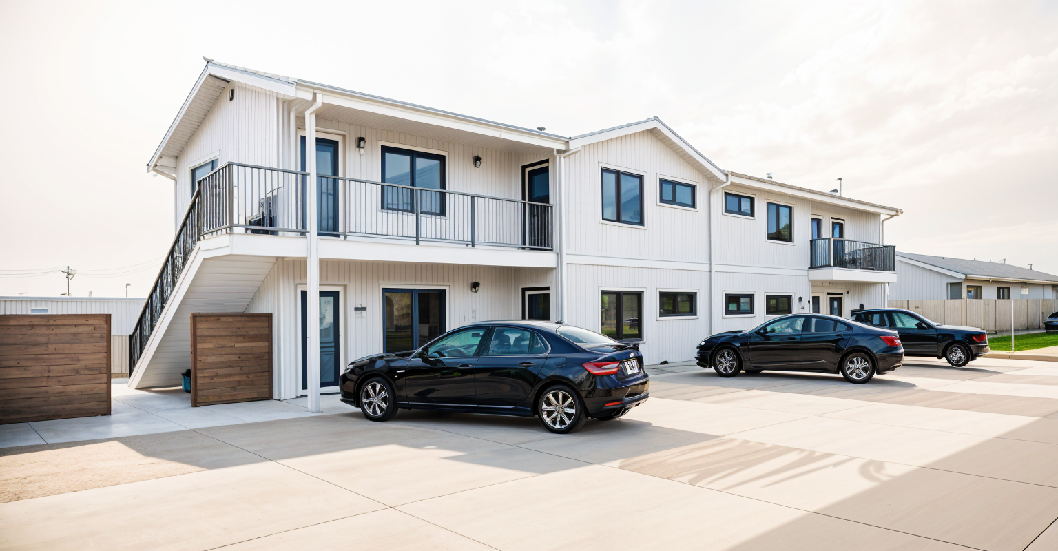 all elements the furniture d cor lighting and layout remain exactly as in the original image with nothing altered added or removed a modern multifunctional home office and lounge with a calm refined atmosphere the space is softly illuminated by natural daylight in a soft white tone creating a serene balanced mood light filters through sheer beige curtains draped over a large black framed window with slim aluminum mullions and clear matte glass panels allowing diffused daylight to fill the room with gentle brightness the floor is natural oak in a herringbone pattern with a matte finish that adds warmth and subtle texture the built in cabinetry and desk are finished in taupe beige hex cbbba0 a light taupe with a cool undertone smooth matte surface and no visible wood grain or texture the walls are painted in soft off white with a cool neutral undertone complementing the cabinetry and creating a cohesive tranquil palette to the right a sofa upholstered in deep olive green boucl fabric anchors the space soft textured and matte with a tactile surface that catches light subtly it s styled with a beige cotton throw and two cushions one in terracotta velvet the other in off white linen above the sofa hangs an abstract black and white artwork complemented by a matte black floor lamp with a white cylindrical shade the desk area features light neutral tones and an ivory upholstered swivel chair adding softness and balance books and a hanging green plant introduce natural accents without disturbing the clean geometry of the design the atmosphere is cool minimal and harmonious defined by natural oak flooring cool taupe cabinetry and soft white daylight enhancing the contrast of textures from matte wood to tactile boucl captured at eye level with a wide angle lens the rendering should preserve a gentle depth of field with the sofa and desk in focus and the background softly fading into light architecture