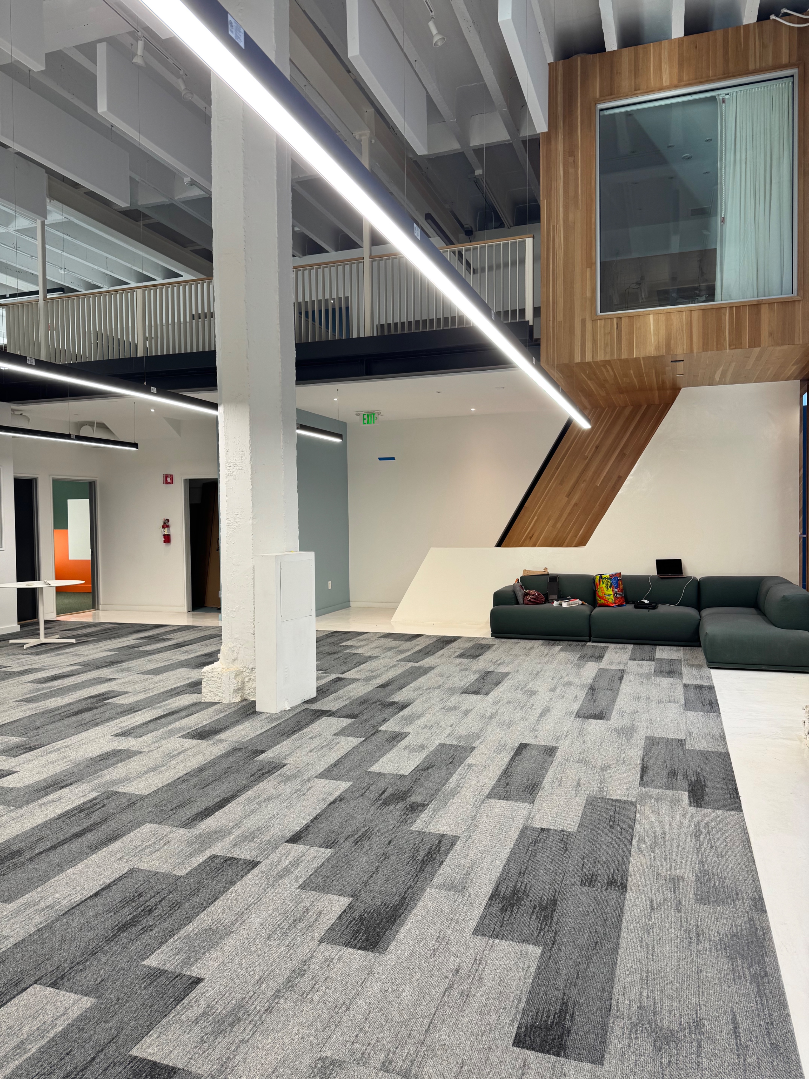 keep all architecture layout in image the same remove items from the sofa and add people in the space