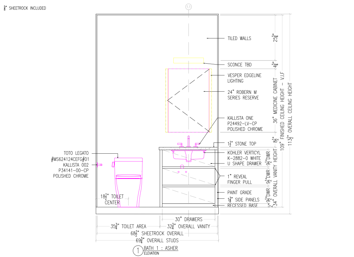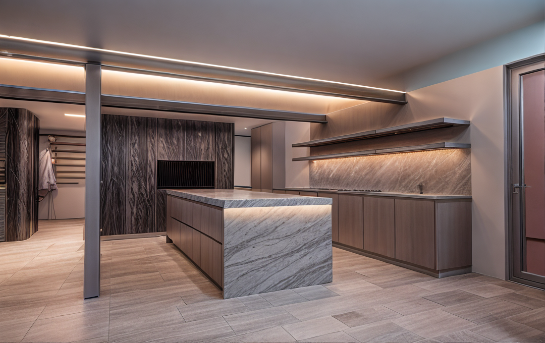 modern close up shot high hat lighting beige travertine 12 x24 tiles on the walls and floors vanity painted white 3 flat drawers with 1 spaces between polished chrome plumbing fixtures and accessories architecture