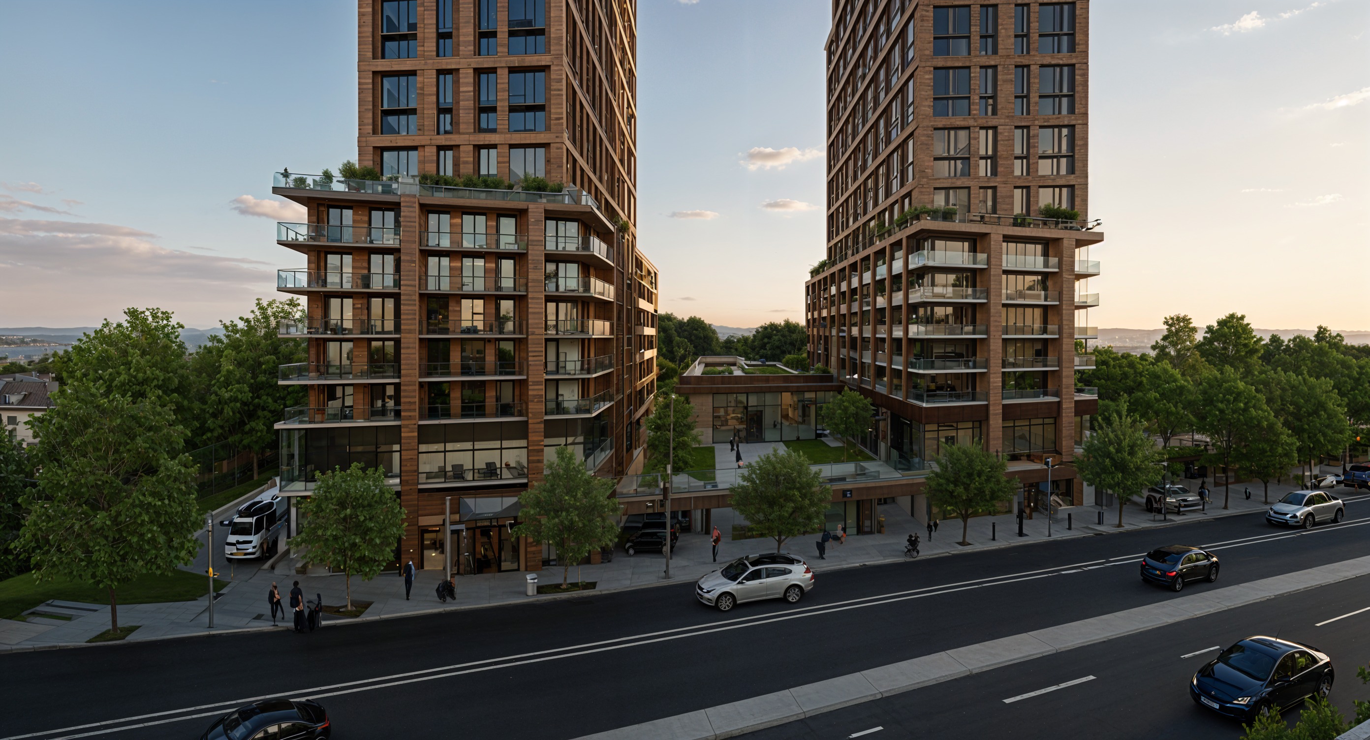 improve the image remove the brick portion linking the buildings