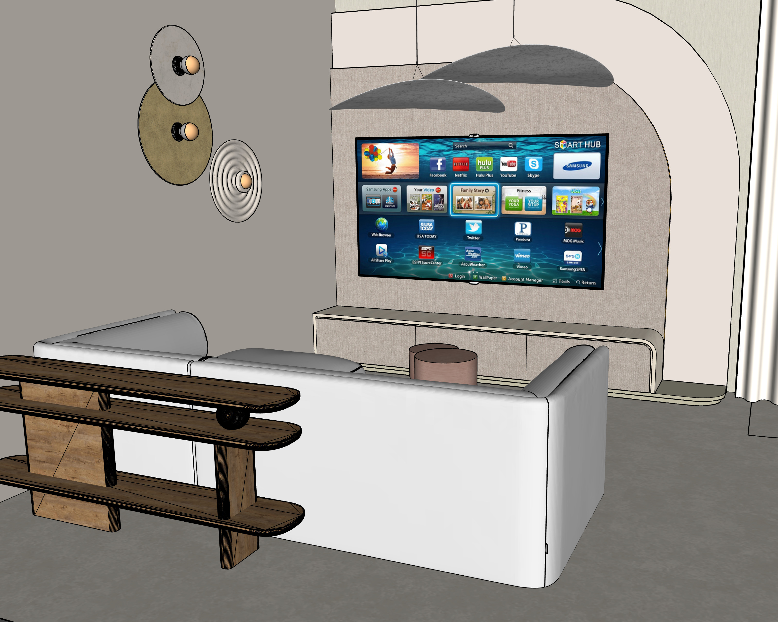 make celling lamps glow make sconces ooze warm ligh make coffee tables copper make celling light rice paper don t add any additional light make bigger table dark wood make floor light baige