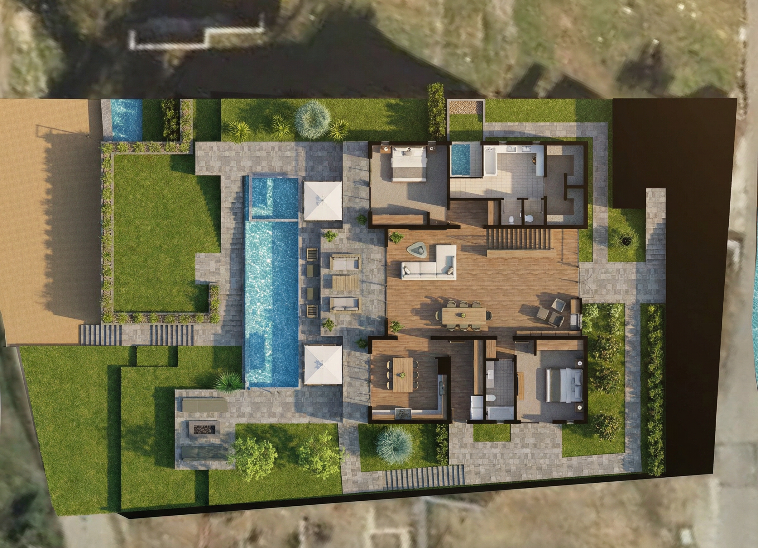 show driveway use red brick on main house make it realistic