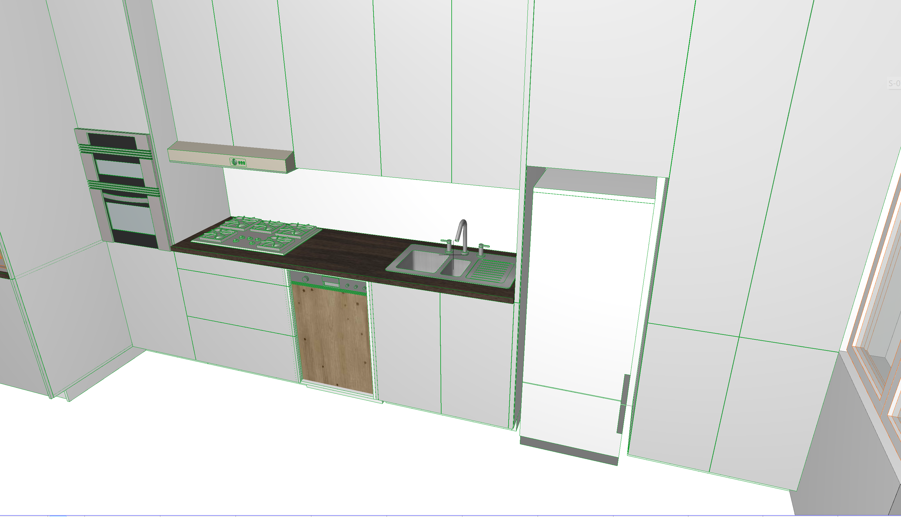 render a modern kitchen with high gloss handleless cabinets in soft ivory tone overall look should be sleek glossy modern with warm lighting highlighting reflections flooring should be white marble window profiles white in colour the counter should be in light colours add some decorative objects on the counter walls in white tones the ceiling starts where the cupboards finish dishwasher white