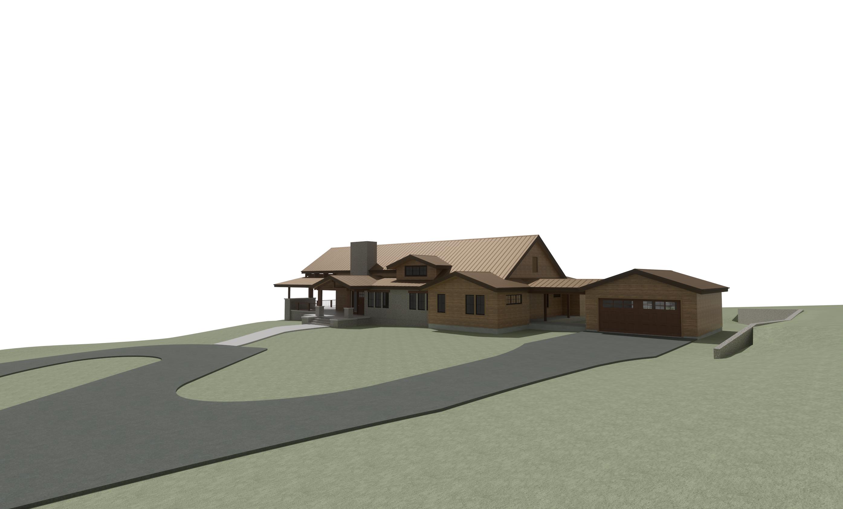 strict geometry lock prompt critical non negotiable geometry lock use the input image as a fixed reference the architecture must remain identical do not add remove or modify any elements do not change any windows or doors in any way do not replace resize move or redesign windows or doors do not add features such as fireplaces trim changes or new openings do not alter rooflines walls structure or proportions if unsure keep the original exactly as is the absolute most important thing is do not change the shape of the structure or window or door sizes the most important thing is to not change the size of the house in anyway create a realistic elevation of the architectural design maintaining the original materials of lap siding in their correct locations enhance the lighting and shadows for a lifelike effect but ensure that the texture and arrangement of both siding types remain exactly as in the original design make sure to keep the rock on the walls the same make wood siding ghost wood like jackson hole but leave the rock siding dont change the rock siding just make it more realistic keep lap siding horizantal do not make any siding vertical make the roof new metal copper roof this in montana use native montana trees and vegetation make golden hour outside show golden light coming from inside the absolute most important thing is do not change the shape of the structure or window or door sizes the most important thing is to not change the size of the house in anyway there is rock slab patio on the left make small mountain far off in distance to the left the background is and open field with montana trees far off in distance the hill on the right slopes up slightly the hill on the left slopes down also dont change corbels or timbers again the most important thing is to not change the building shape windows or doors keep the same shape dont change lines in windows or doors keep camera perspective the same make asphalt new