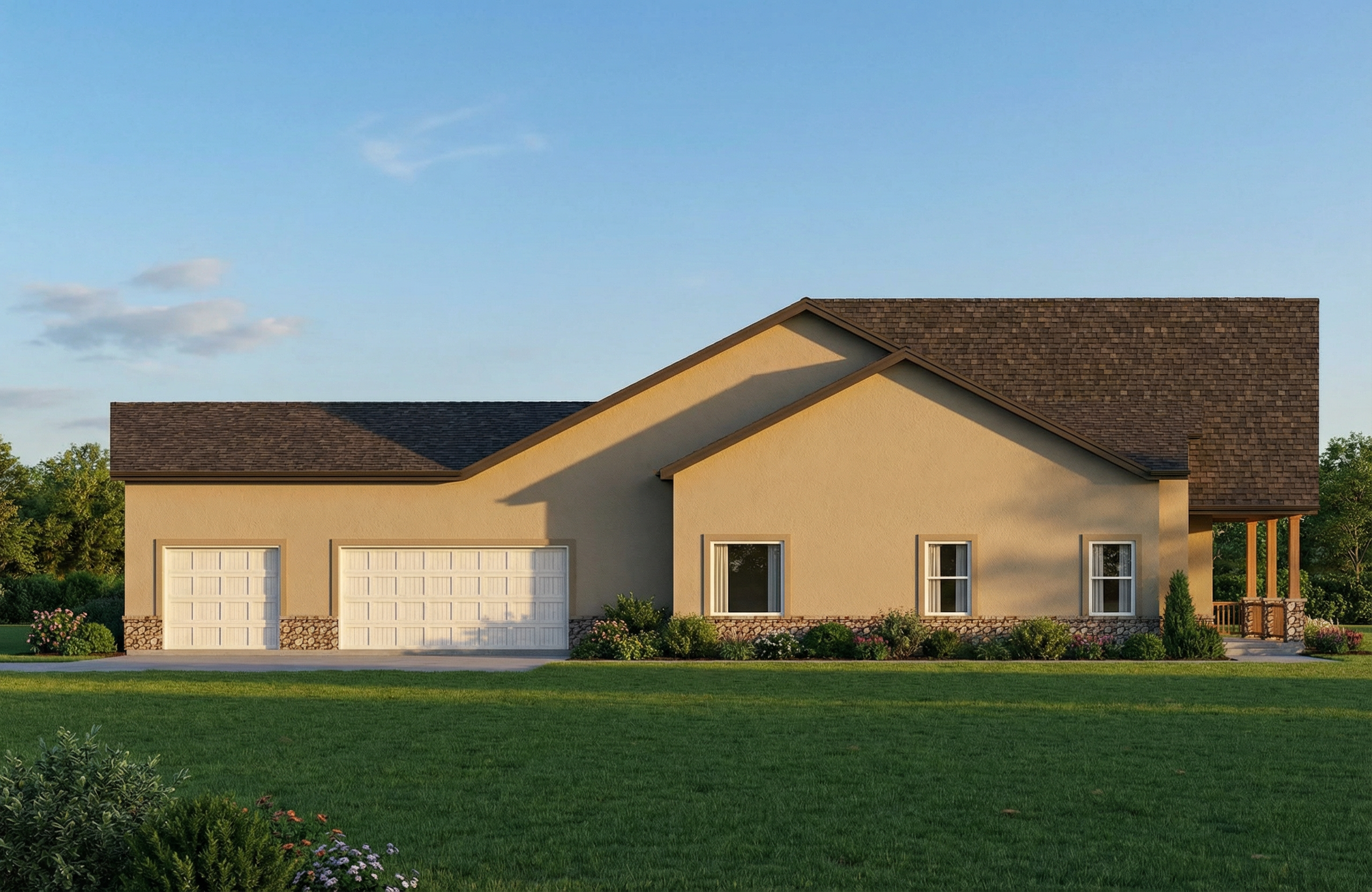 black standing seam metal roof black board and batten siding black window frame red cedar porch columns windows to show reflection like reference file vegetation like reference file gray concrete driveway and walk garage coach lights to be james allan kent 14 tall outdoor wall sconce front door handle kwikset san clemente sectional single cylinder keyed entry handleset