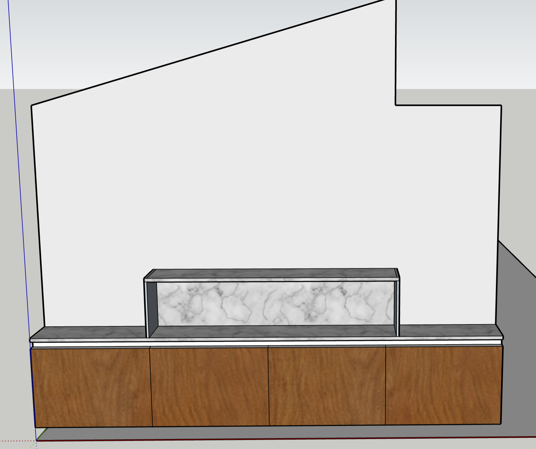 make this look realistic and keep the materials as shown make the wood look like an oak and add a piece of art and accessories