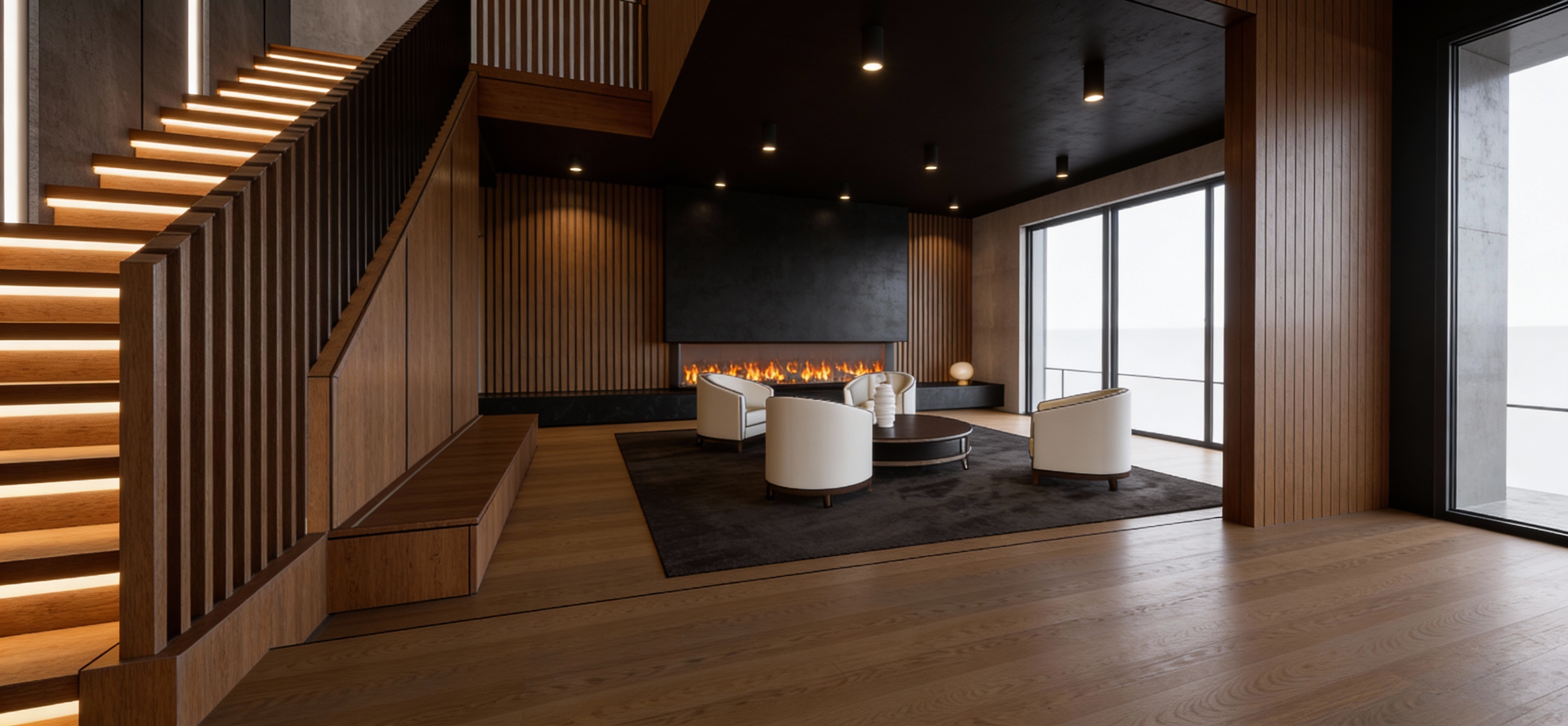 exterior shot keep exact layout of perspective drawing scale tiles to 5 x10 use navy blue for vanity cabientry use florals on all walls for wallpaper smaller scale tile five rows of navy tile five rows of light blue tile 9 rows of matte white tile add white tub measuring 30 x 60 x 14