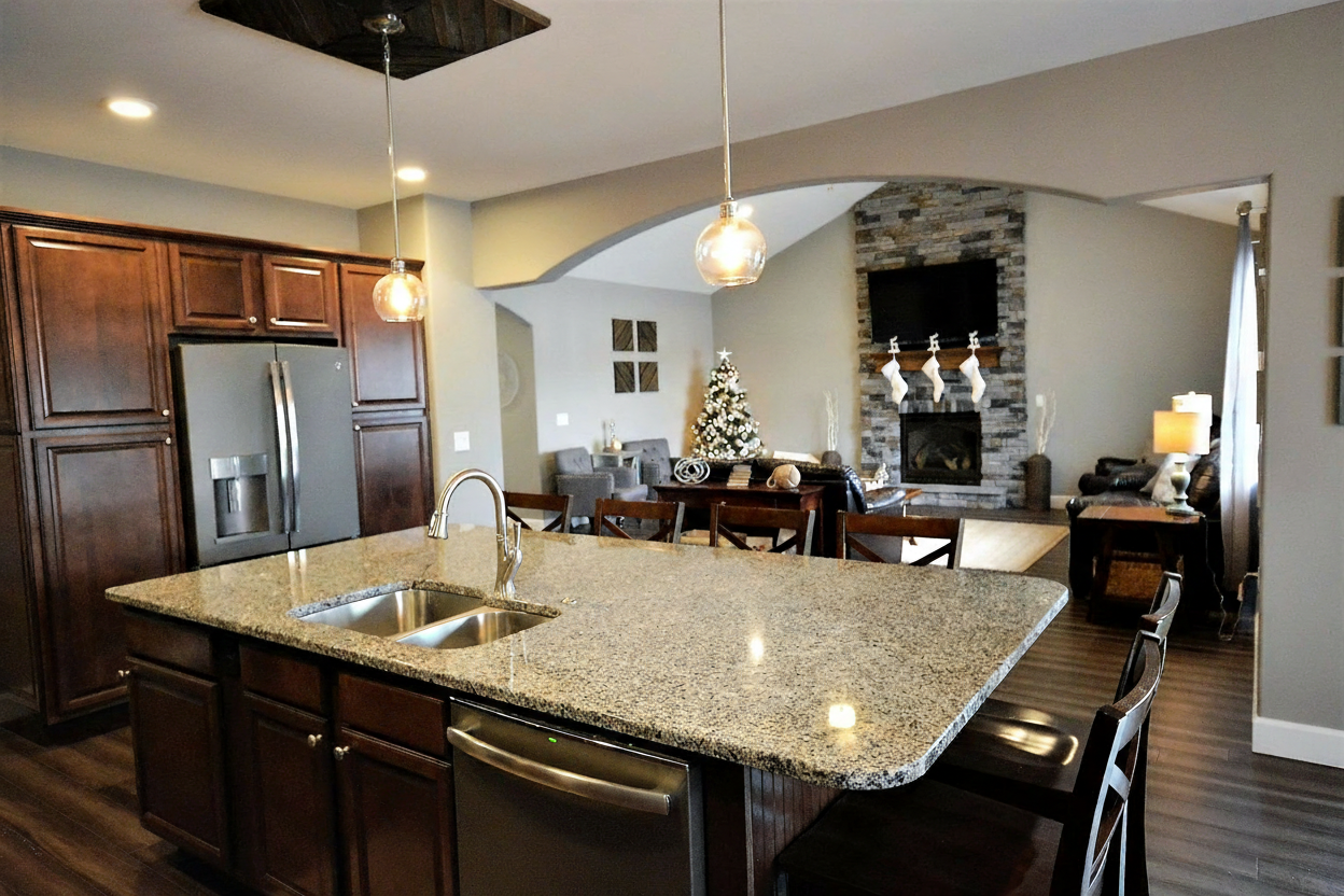 interior view from kitchen of living room make living room look like reference image